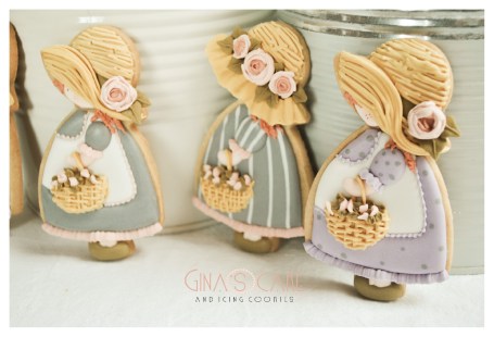 Il tagliabiscotto utilizzato è la Sunbonnet di Cutterspepe, in assoluto una delle mie cookie dolls preferite. Non c’è stagione in cui io non lo riproponga anche perchè, a quanto pare, non piace solo a me. Nel corso di questi due anni, come potreste vedere dalle foto qui sotto, vuoi per il miglioramento nella pratica, vuoi per un pizzico di fantasia in più, ho apportato delle modifiche all’interpretazione del soggetto che prevede la bambolina vista di profilo. Se l’anno scorso, si intravedeva un viso nascosto sotto quel cappello, da quest’anno la “mia” Sunbonnet ha un volto vero e proprio. Basta modificare il disegno sul biscotto senza variare la forma della frolla ottenuta dopo il taglio con il cutter.