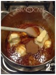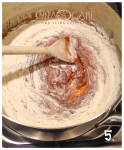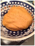 Ingredienti: 150 g di zucchero, 40 ml di acqua calda, 120 g di miele, 100 g di burro, 3 tuorli , 420 g di farina, 1 cucchiaino e mezzo di mix di spezie per pan d’epice o pan pepato. Procedimento: in una pentola dal fondo spesso, inserire lo zucchero e portare a ebollizione a fuoco basso, fin tanto che lo zucchero non diventi di color ambrato. Con molta cautela, aggiungere i 40 ml. di acqua bollente e mescolare con un cucchiaio di legno (foto 1). Togliere la pentola dal fuoco e aggiungere il burro e le spezie. Mescolare bene. (foto 2.) Lasciar riposare per una decina di minuti. Quando il composto si sarà un po’ raffreddato, aggiungere il miele (foto 3) e i tuorli mescolando in modo deciso (foto 4). Incorporare la farina in tre volte, mescolando con il cucchiaio di legno (foto 5 e 6) e infine con le mani per ottenere una massa compatta, omogenea ed elastica (foto 7). Appiattire la palla di pasta con le mani, avvolgerla nella pellicola e riporla in frigorifero per una notte intera.