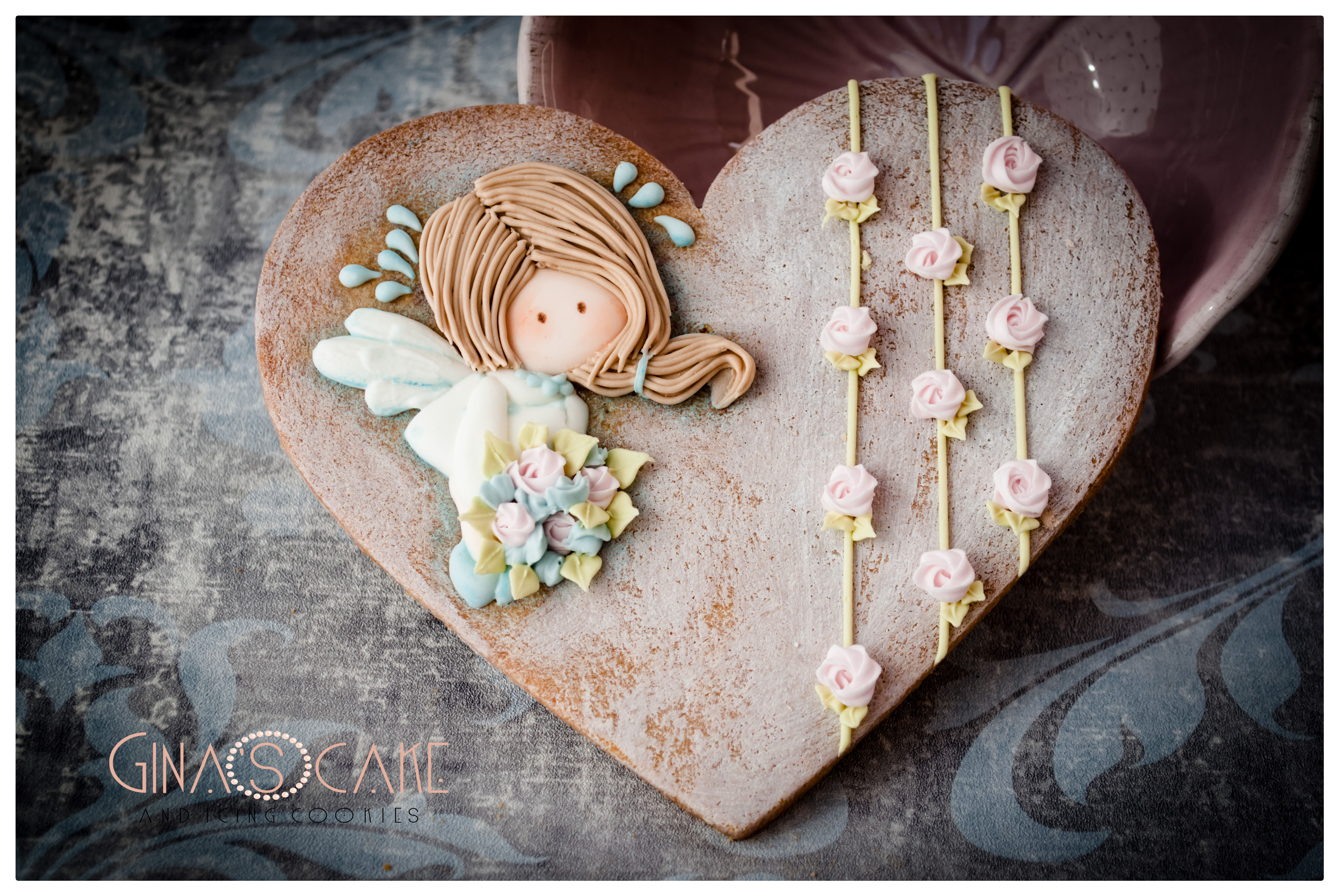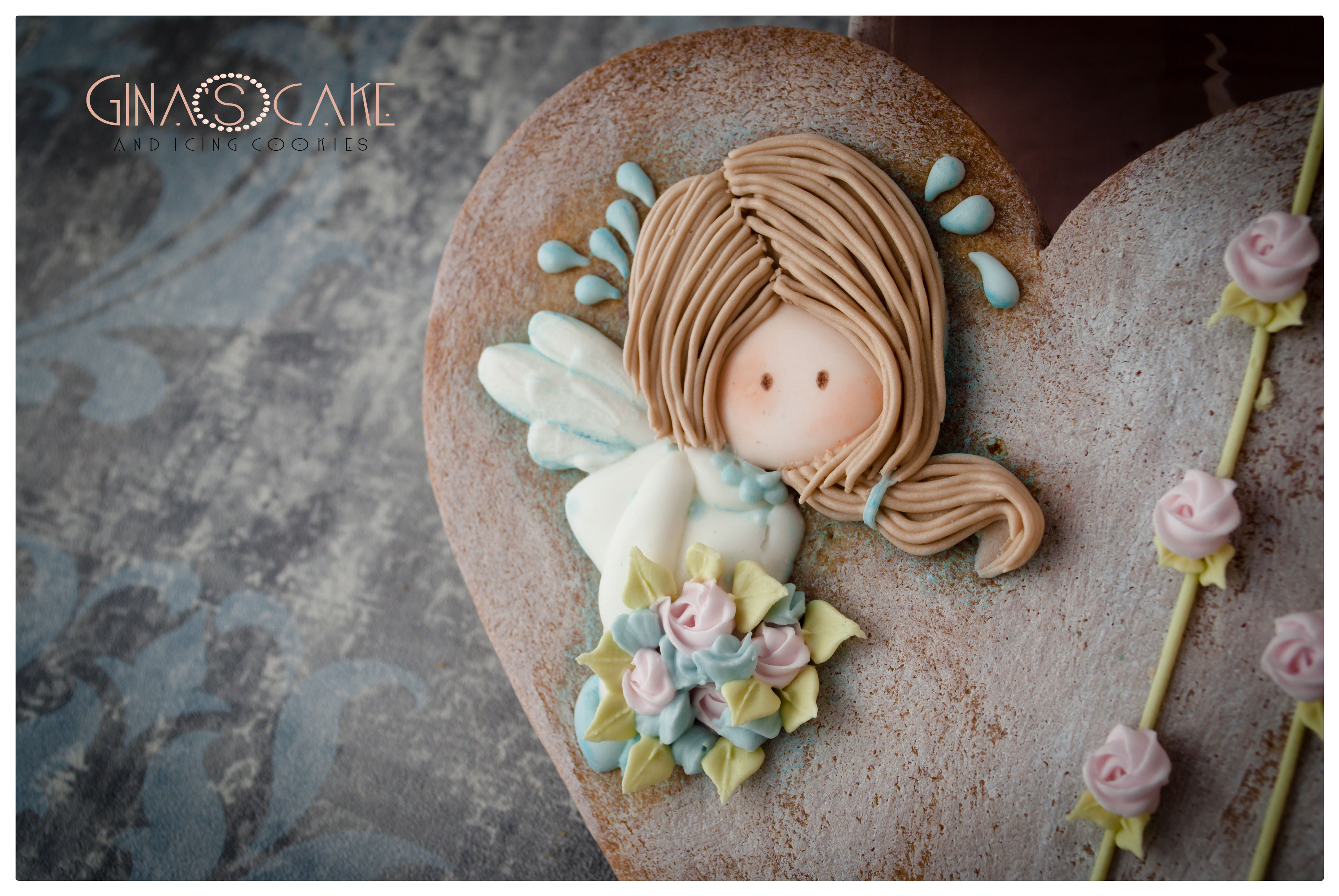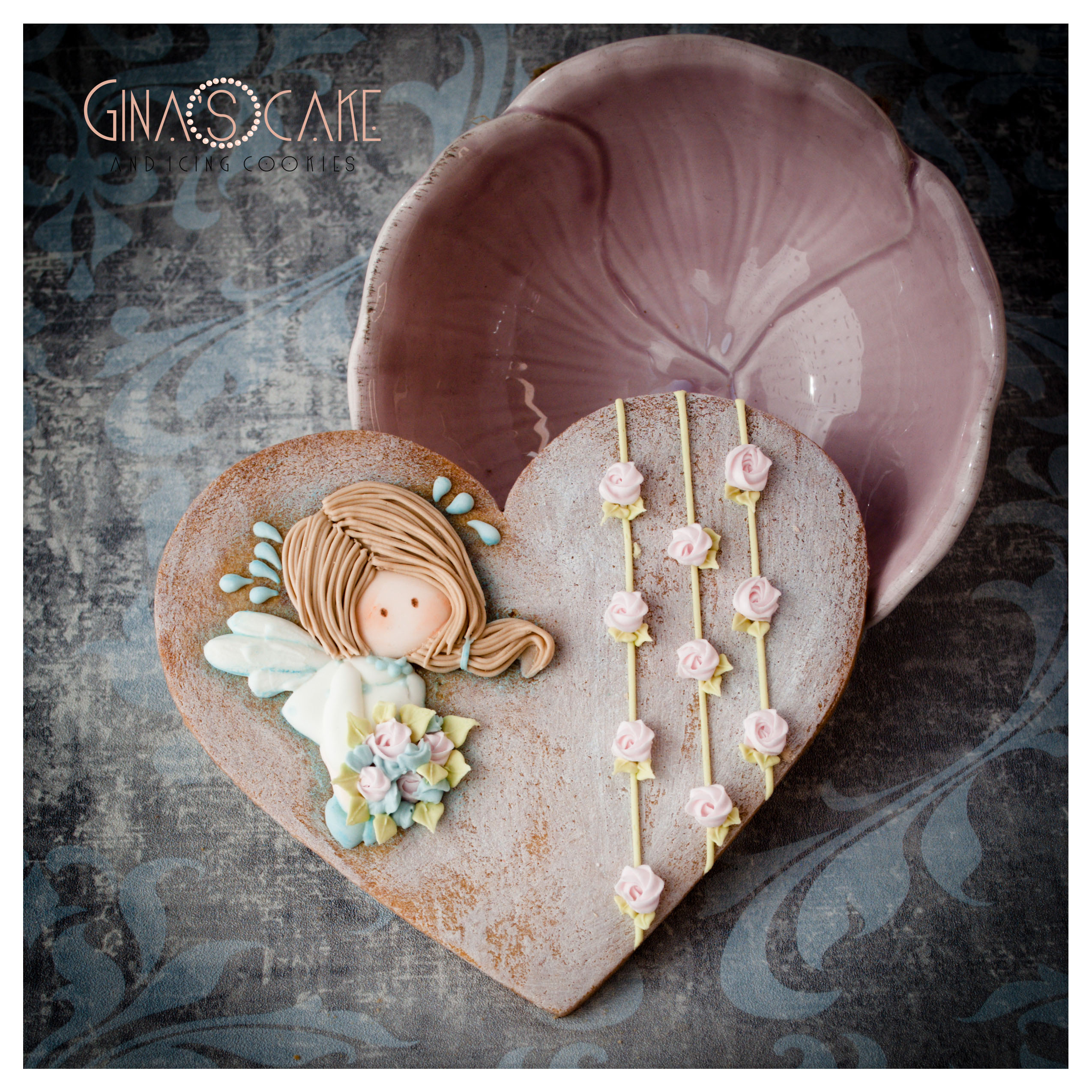 La fatina è stata realizzata con uno stencil di Ann Lubimova, usato a crudo sulla frolla, dopo averlo cosparso di cacao in polvere.