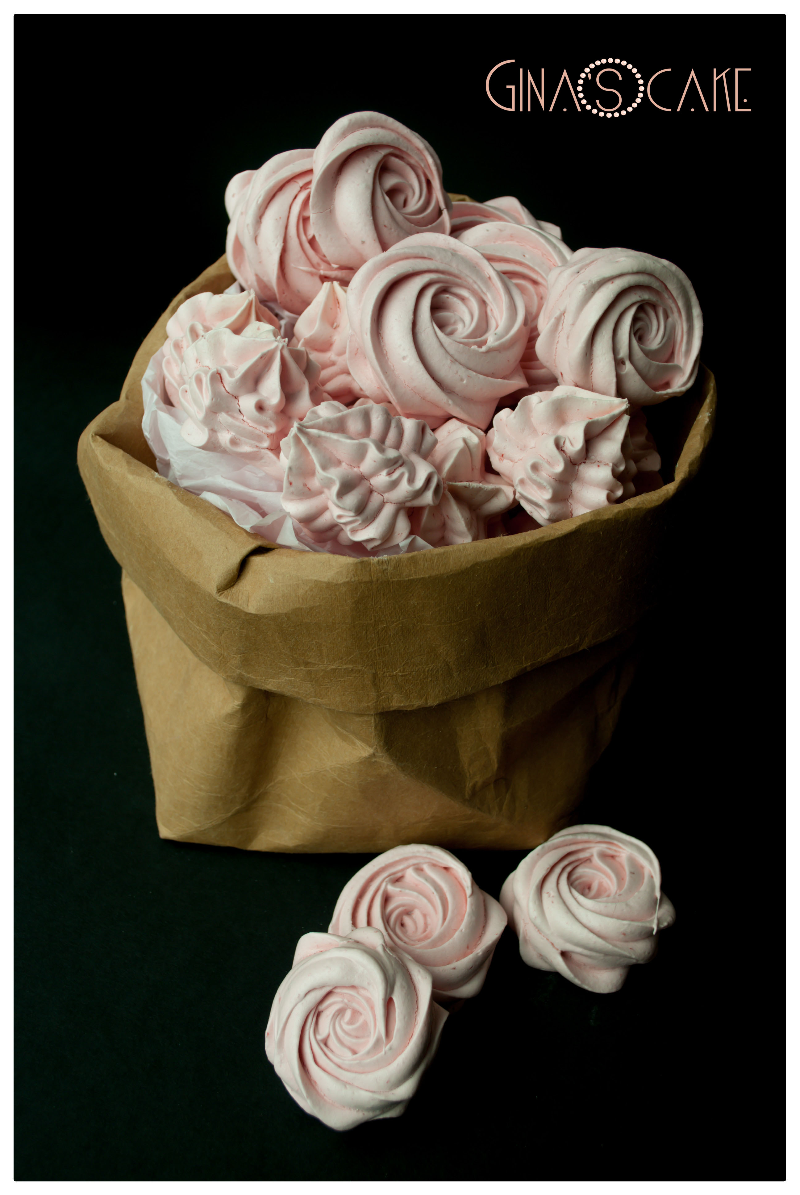 Procedimento: preparare la purèe, frullando bene le fragole senza l’aggiunta di zucchero. Se si usa l’albume disidradato, occorre lasciarlo reidratare per alcune ore mescolato alla purèe, se invece si usa la polvere di meringa, questi tempi non sono necessari. Nella planetaria, con la frusta a filo, montare gradualmente la purèe. Quando inizia ad aumentare di volume aggiungere un cucchiaio alla volta di zucchero semolato. Con l’aiuto di una spatola, incorporare delicatamente lo zucchero a velo, con movimenti circolari dal basso verso l’alto. Procedere con il dressage delle meringhe su una teglia ricoperta con carta da forno, utilizzando le bocchette di vostro gradimento. Cuocere a 75° per almeno 3 ore.