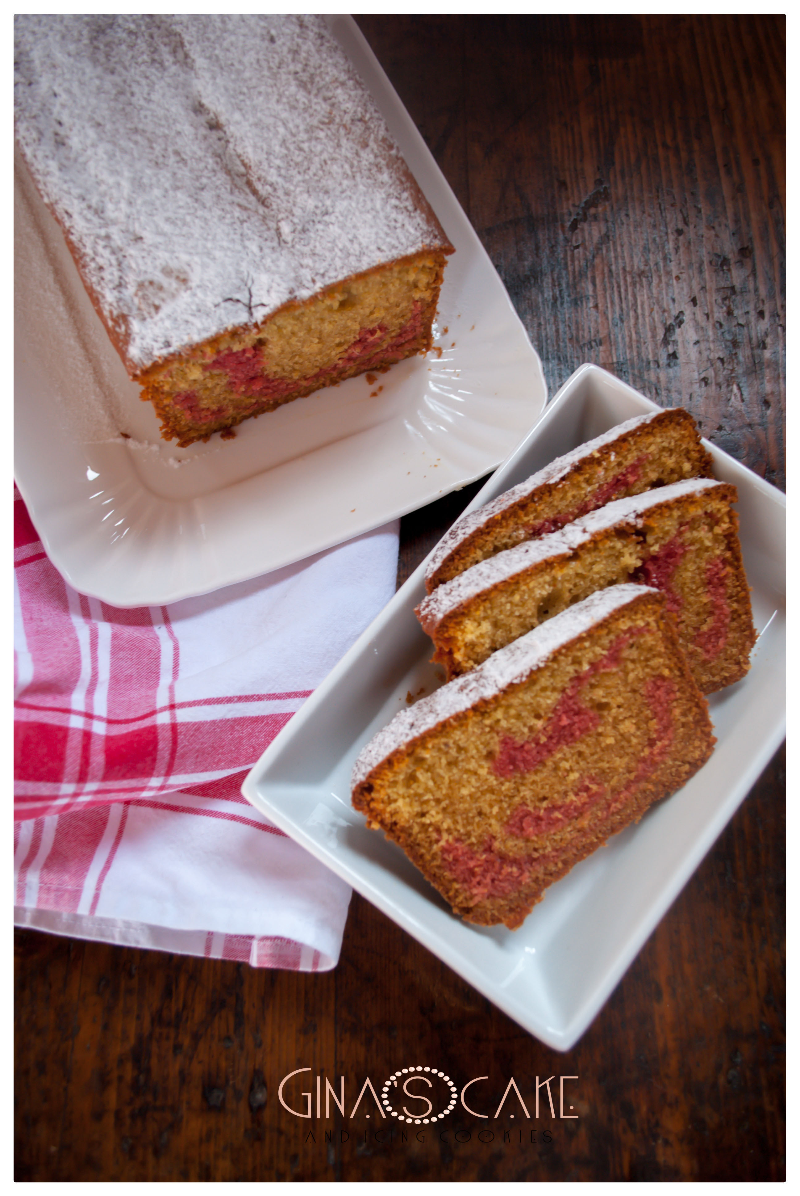 Preriscaldare il forno a 160º. Imburrare e infarinare una teglia da plum cake da 22-24 cm di lunghezza. Ricoprire il fondo della teglia con il composto al pistacchio incominciando dai bordi verso il centro, formando delle spirali. Procedere nello stesso modo con il composto ai lamponi. Alternare quindi gli strati, terminando con quello al pistacchio. Si dovranno comunque avere 3 strati al pistacchio e 2 al lampone. Con l’aiuto di una spatola angolata lisciare la superficie. Infornare per 1 ora e mezza, verificando il livello di cottura con la prova stecchino. Poco dopo uscita dal forno, togliere la torta dalla teglia e lasciarla raffreddare su una griglia. Eventualmente, spolverare di zucchero a velo prima di servire.