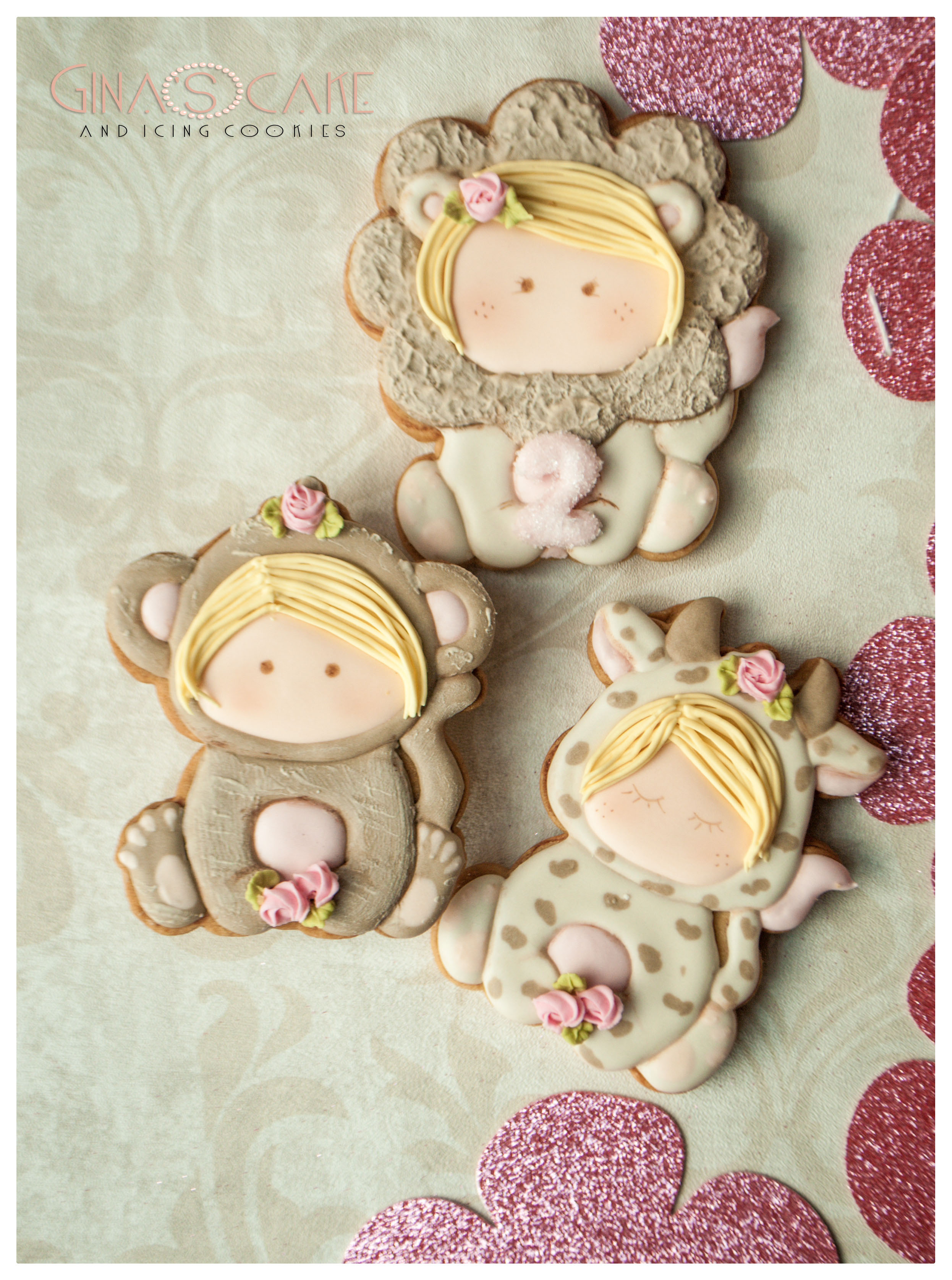 Come vi avevo detto, a causa del caldo eccessivo, questo non è un bel periodo per decorare biscotti con la ghiaccia reale. L’astinenza di un mese si è però finalmente interrotta, grazie all’opportunità di preparare questi biscotti in onore del 2° compleanno di una tenera amica, la cui mamma nel scegliere questi soggetti mi ha indotto a progettarli in un modo un po’ diverso. Dopo averne preparato due serie per decorare le torte di altrettanti compleanni, un po’ stufa di dovermi ripetere (lo so, mi basta poco…..ma è più forte di me: ho bisogno di variare il più possibile!) ma al tempo stesso con il piacere di assecondare la richiesta postami, ispirata da certi tagliabiscotti scovati su Etsy, in vendita nel negozio di SugartessCutters, ho “umanizzato”il leone, la scimmia e la giraffa trasformandoli in teneri bambini con indosso il loro costume preferito.