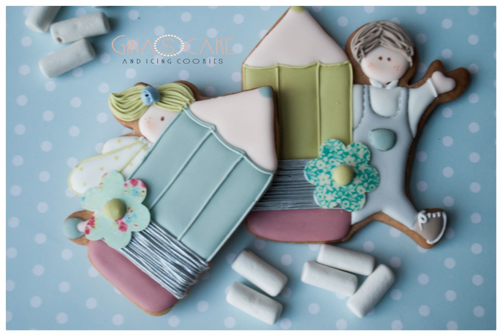 Per realizzarli, ancora una volta mi sono divertita ad assemblare insieme vari tagliabiscotti, tutti firmati Cutterspepe. I fiori sono realizzati con papel de azucar di Postreadiccion. Le scritte sulla lettera A sono realizzate con un pennarello bianco ad inchiostro alimentare.