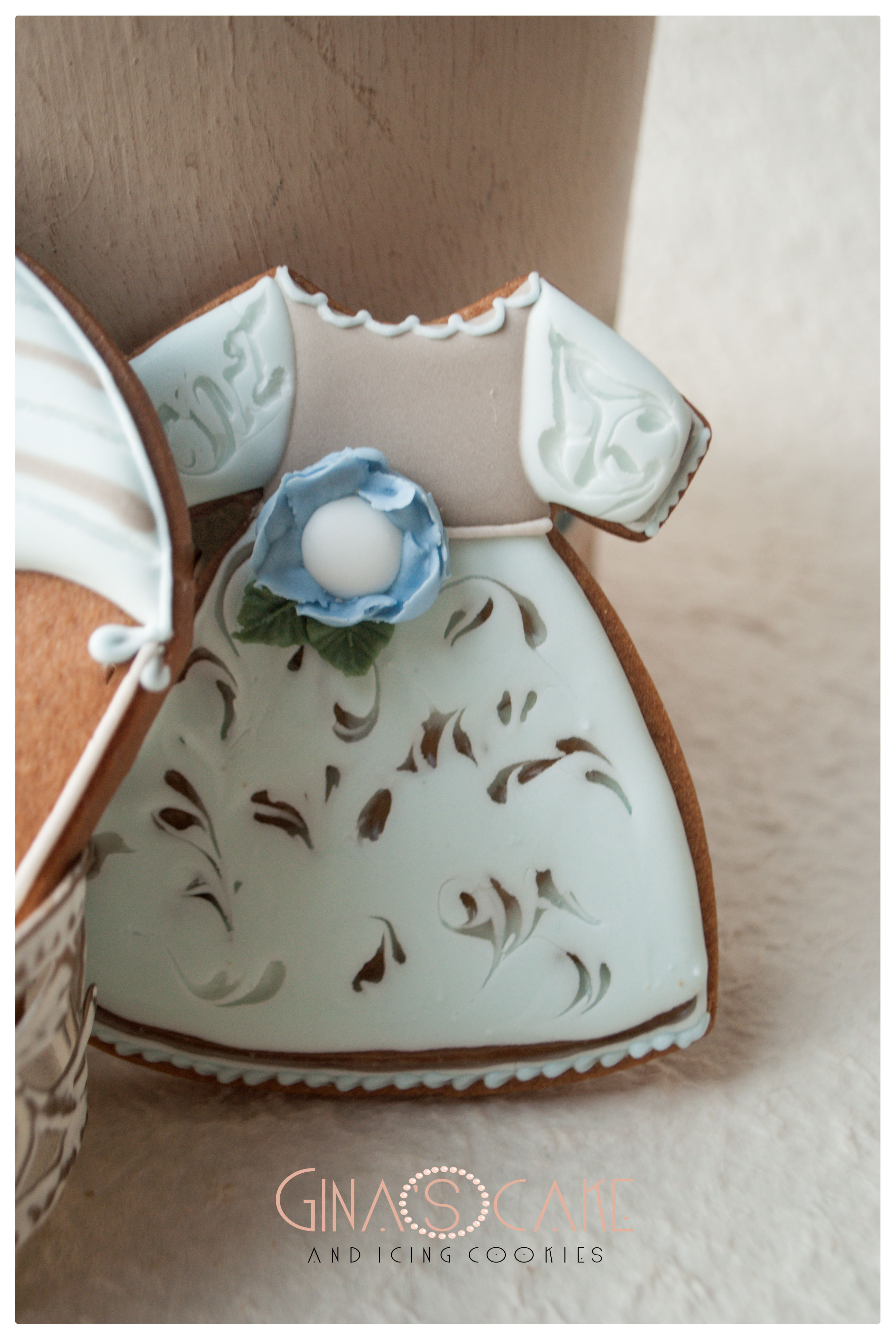 L’effetto “intarsio” che vedete sugli abiti è stato realizzato utilizzando il piping gel e la ghiaccia reale dalla consistenza run out. Solo che, a differenza di quanto presentato in un precedente post (clicca qui), il piping gel è stato inserito sulla ghiaccia reale e non viceversa…In sostanza, ero ancora nella fase in cui stavo sperimentando l’effetto trasparenza scoperto grazie alla cookier Rainbow Chima (di cui però non sono riuscita a recuperare alcuna informazione ne tutorial in merito): pur avendo probabilmente individuato il materiale necessario per ottenere la trasparenza, non avevo ancora trovato la corretta modalità per utilizzarlo. Insomma, questi biscotti sono il risultato di “un fallimento”ma nonostante ciò, ho scelto di non scartarli perchè non mi sono affatto dispiaciuti!