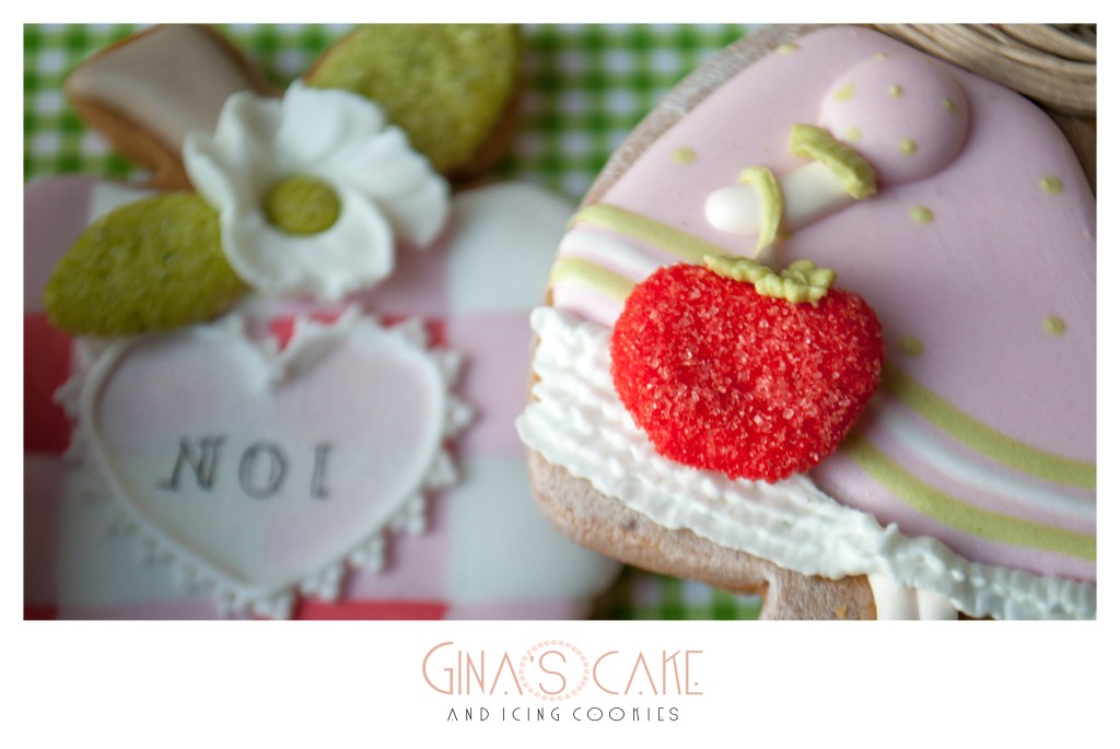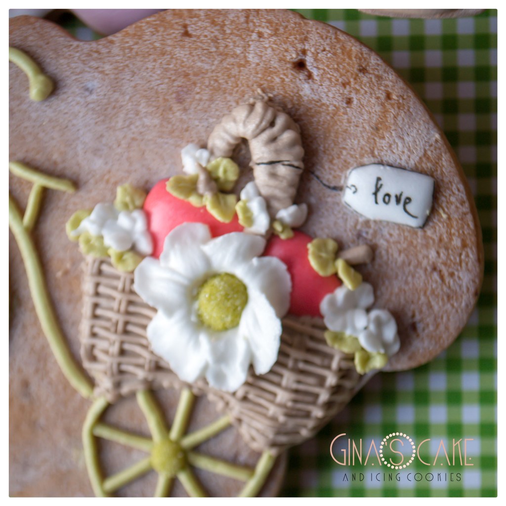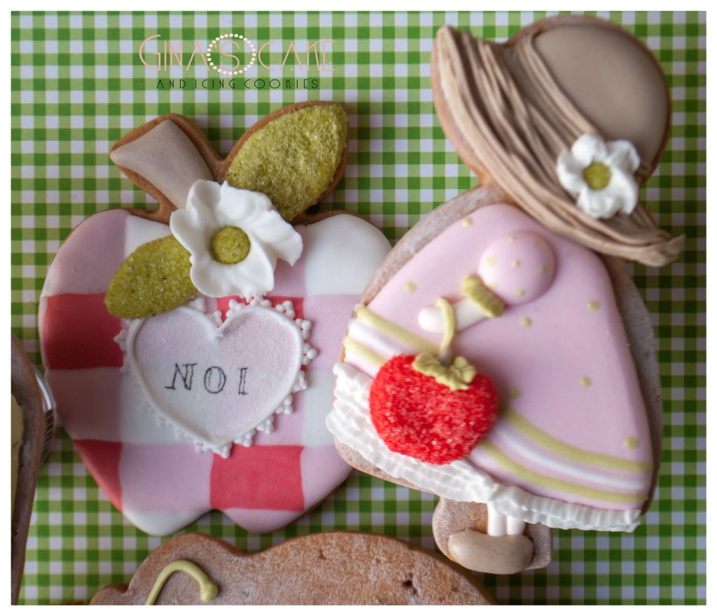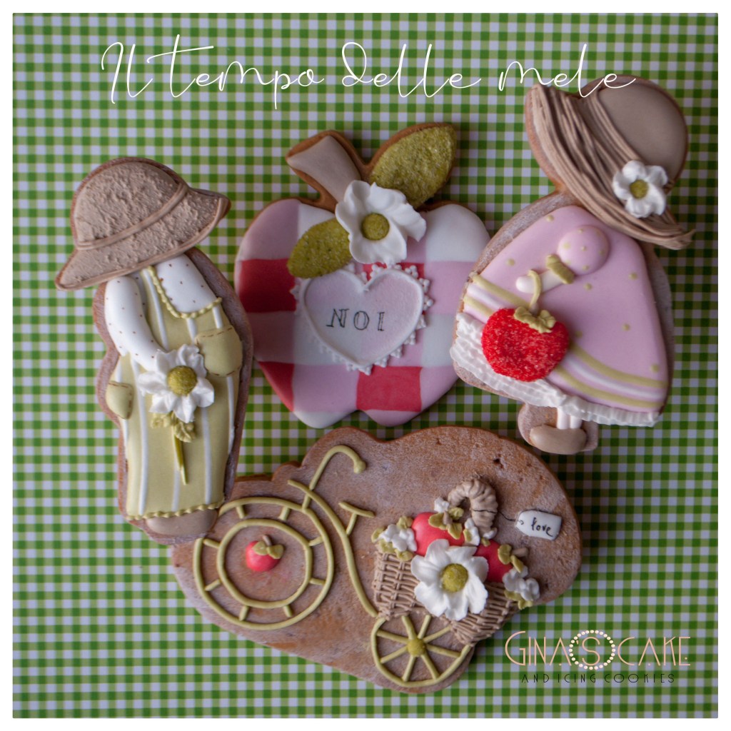 Ma torniamo a parlare dei biscotti. Come avrete notato, il titolo del film è solo un pretesto per giocare con le parole perchè di fatto i soggetti scelti non hanno nulla a che fare con la trama e i personaggi della pellicola. La mela rossa considerata come simbolo d’amore e di passione è quindi la protagonista principale ed è realizzata con un cutter americano firmato Ann Clark. Per ricoprire il ruolo degli innamorati ho scelto la coppia Sunbonnet, magistralmente interpretata dai tagliabiscotti in rame di Cutterspepe. Come elemento squisitamente romantico, ho scelto la bicicletta vintage di Lubimova Cookie Cutters. La caratterizzazione di ogni singolo biscotto rispetta infine lo stile country-chic di cui, per natura, sono permeati i due innamorati Sunbonnet.