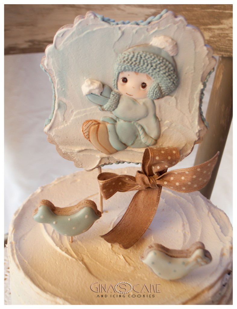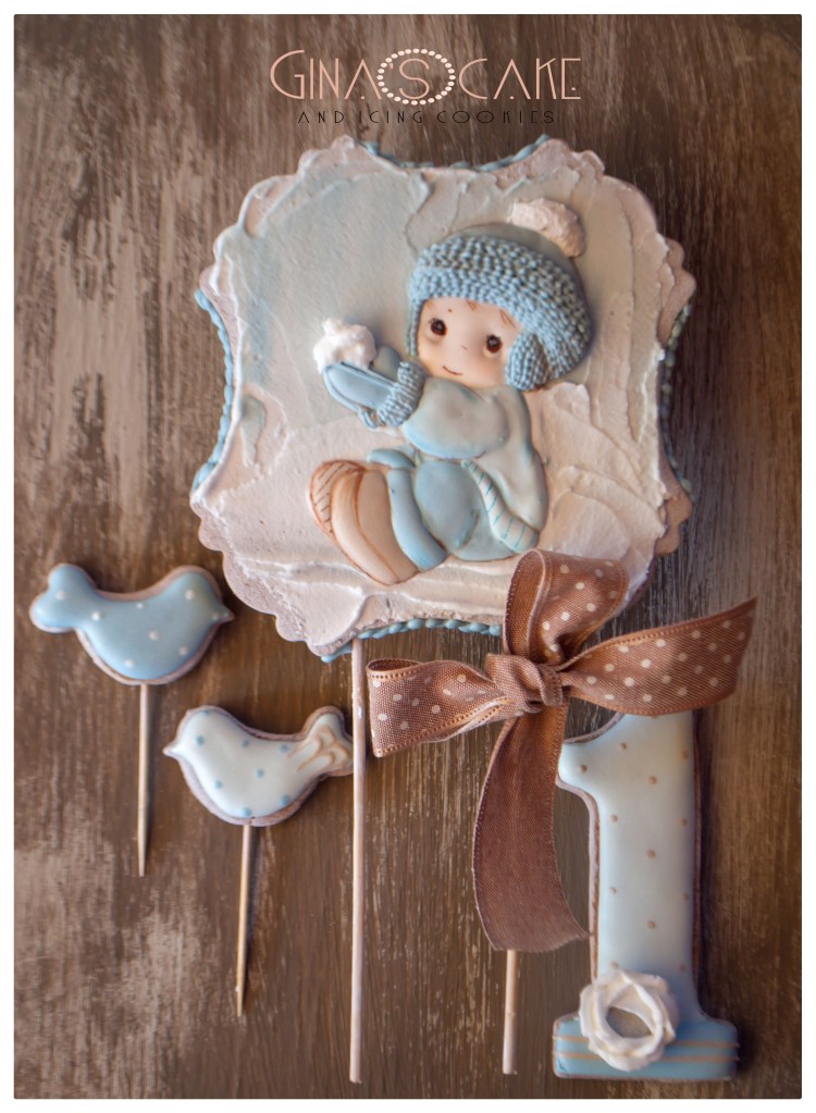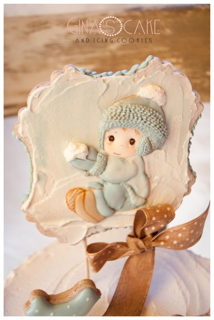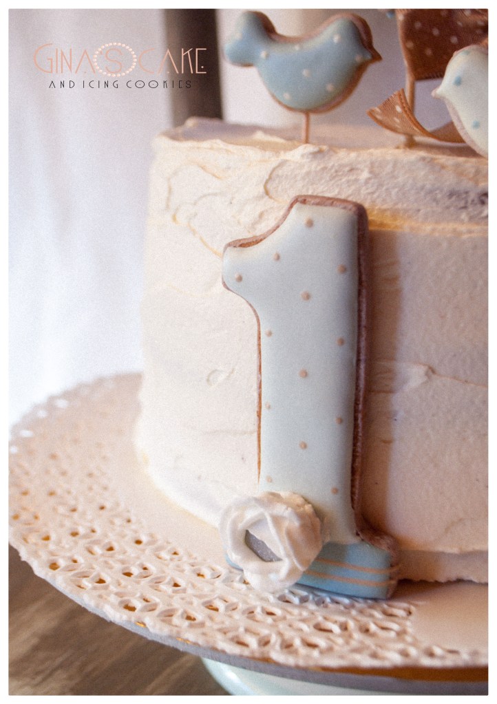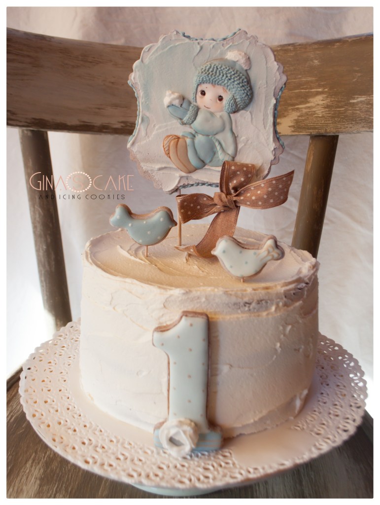 La Torta Vestita da Torta di oggi, è dedicata al Primo Compleanno di Vittorio, il fratellino del dolcissimo Edoardo, uno dei miei piccoli “clienti” più affezionati. Quando ho completato la torta, l’ho guardata e mi sono emozionata. Accade ogni volta. E’ una sensazione che non so descrivere bene….sembra quasi che l’abbia fatta qualcun altro. Ogni volta, rimango stupita, incantata dalla tenerezza, dalla dolcezza che emanano tutti quegli elementi messi insieme non a caso, ma con un preciso intento. E’ come se ci fosse qualcun altro o qualcos’altro a determinarne il risultato. E’ come se le mie mani eseguissero e basta. Queste torte nascono nella mia mente dal momento in cui mi vengono richieste:le immagino, le penso e le ripenso ma poi resto in attesa di vedere che cosa accadrà. Raramente, ne disegno il progetto. So che dovrei farlo ma non ci riesco. Le idee rimangono nella mia testa, passando dal cuore. Il cuore, già proprio lui….toccare anche solo per un istante quello degli altri attraverso una torta e dei biscotti non può che far bene anche al mio, tutt’ora ancora un po’ stanco e ammaccato.