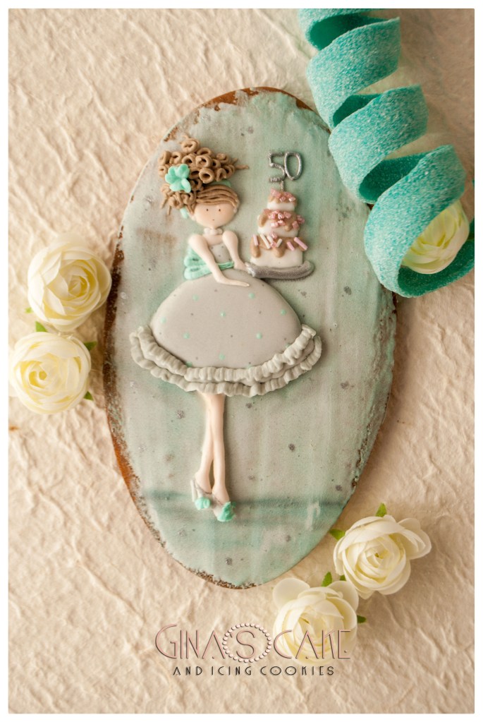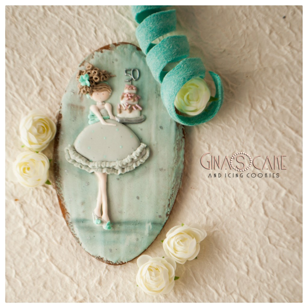 Per la serie “dillo con un biscotto”, ecco il mio biglietto d’auguri per il cinquantesimo compleanno di una cara amica. Per realizzarlo mi sono ispirata a uno dei meravigliosi timbri dell’azienda americana Sampingbella.