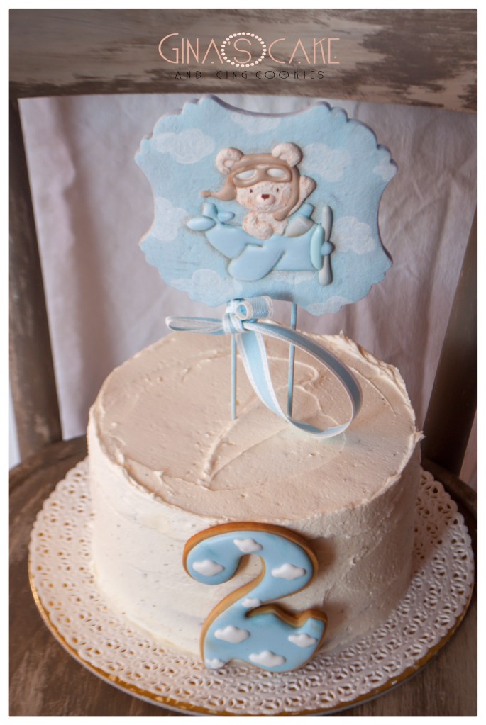 Il protagonista della Torta Vestita da Torta creata per il secondo compleanno di Tommaso, è questo tenero Teddy che indossa i panni di un pilota. Vola tra le nuvole, dolce Tommy!