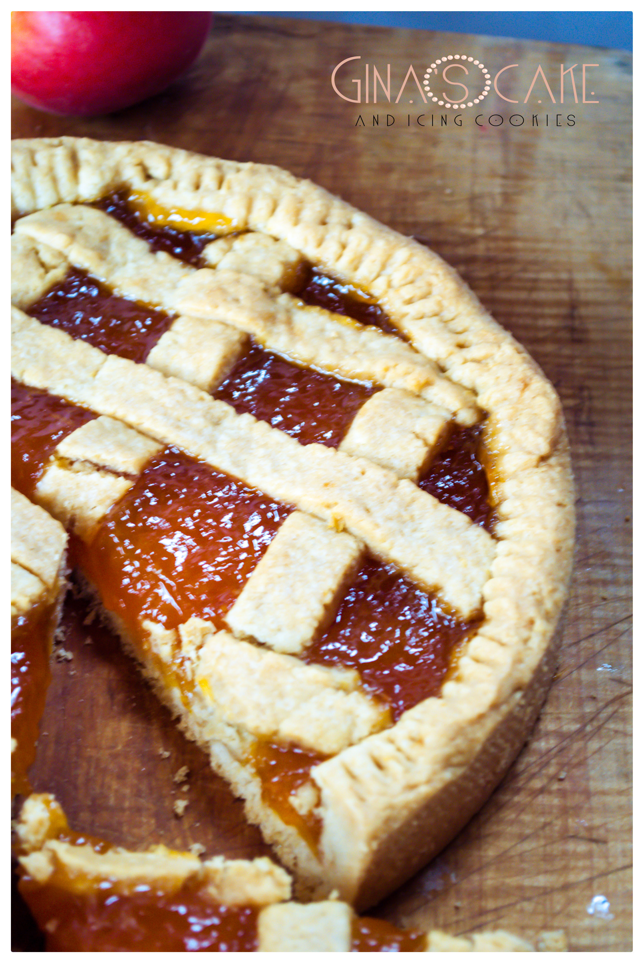 Manca pochissimo all’inizio dell’estate e come da tradizione, da qualche anno a questa parte, mi dedico alla preparazione delle confetture. Di questa, al Mango e Albicocca vi raccontai la ricetta lo scorso anno (clicca qui). Ora ve la voglio riproporre (a noi è piaciuta così tanto che non posso non ripeterla!) nelle vesti di farcitura per una classica crostata. Eh si, non si direbbe ma le crostate quelle più banali esistono ancora e soprattutto piacciono ancora agli essere umani! Perchè dico questo? Perchè ahimè anche la frolla è stata contaminata dal cake design: e così, vai di crostate moderne quindi ring, tappetini, teglie microforate come se non ci fosse un domani, frolla dipinta prima o dopo la cottura, frolla colorata, fiori di frolla, fiori di frolla a freddo, frolla embossing con i mattarelli in legno intarsiati ……E poi vogliamo parlare di chi crede di aver inventato una ricetta di frolla e la battezza con il proprio nome? Insomma, tutto molto bello per carità….infatti io stessa faccio ovviamente parte di questo mondo frolloso come ormai è stra noto, infatti, confesso: di possedere dei ring, i tappetini e teglie micro-forate, anche se non ho mai fatto una crostata moderna in vita mia….ma ho fatto le Tarte come le chiamano i francesi……; di aver sperimentato la pasta frolla colorata già in tempi in cui quasi nessuno se la filava…..; di aver creato l’effetto embossing con i mattarelli originali russi -clicca qui-; di aver dipinto sulla frolla solo dopo la cottura ma per creare unicamente degli sfondi sui miei biscotti (diversamente, non vogliatemene ma è una tecnica che non mi piace); di provare quindi un amore smisurato per la pasta frolla senza per questo “abusarne” dal punto di vista esclusivamente decorativo: ecco perchè quindi vi presento una semplicissima ma buonissima crostata. Esteticamente si presenta alquanto rustica ma avete idea di quanto sia VERA , cioè buona, appagante e consentitemi, anche elegante, grazie a questa confettura mango-cocca così chic?