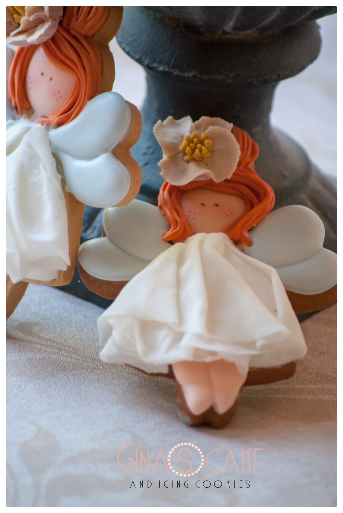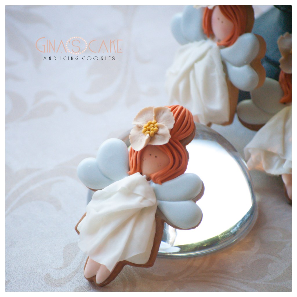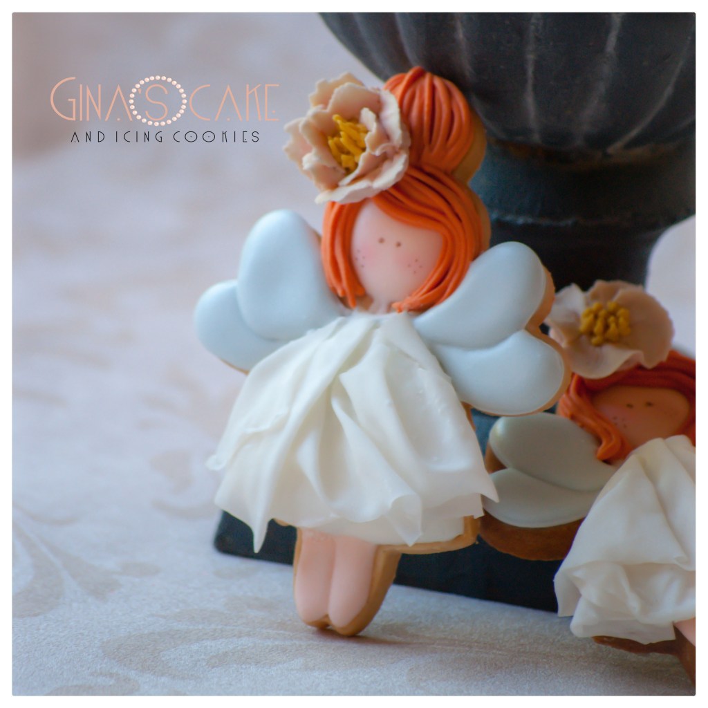 Queste Fatine sono state realizzate con un tagliabiscotti che ho acquistato sul sito Canadese How sweet is that?, disegnato dalla cookier giapponese Shiori Yamamoto in arte @fiocco_cookies. Qualora non la conosceste, vi invito a consultare il suo blog (clicca qui) e la sua pagina Instagram (clicca qui). Ovviamente, non mi sono mica limitata ad acquistare questo cutter……prossimamente, vi farò scoprire anche gli altri. In quanto allo stile nella decorazione, pur condizionata dalla forma del cutter, ho mantenuto il mio, a parte il particolare delle braccia che anch’io come Shiori ho omesso ma solo perchè l’abito non mi consentiva di farcele stare. Infatti, come avrete visto, l’abito è alquanto voluminoso e ingombrante perchè non è realizzato in ghiaccia reale bensì con la Rice Paper. Se volete approfondire l’utilizzo di questa magnifica “carta” alimentare, vi invito a consultare l’articolo in cui qualche mesetto fa, ve ne parlai (clicca qui).