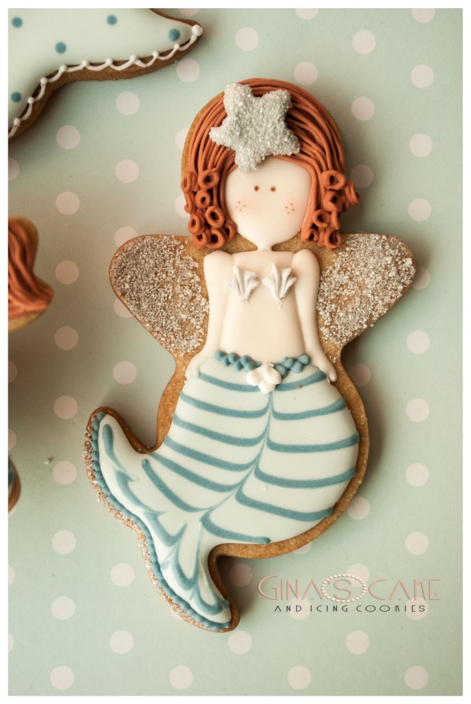 Ho scelto di decorarla con le Sirene semplicemente perchè sono un soggetto che amo particolarmente, soprattutto in questa stagione, infatti da qualche estate a questa parte, non mancano tra le mie creazioni. Il cutter della sirena, disegnato da Muy Dulce Vinuesa, è uno dei primi in assoluto con i quali iniziai la mia collezione di tagliabiscotti in rame.