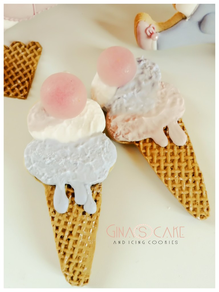 Per questo motivo, non ho ancora tanta voglia di decorare biscotti in tema autunnale, nonostante ci stia già pensando……..Con l’acquisto di questo nuovo tagliabiscotti, sono nate queste due cookie dolls, accompagnate da golosissimi coni gelato.