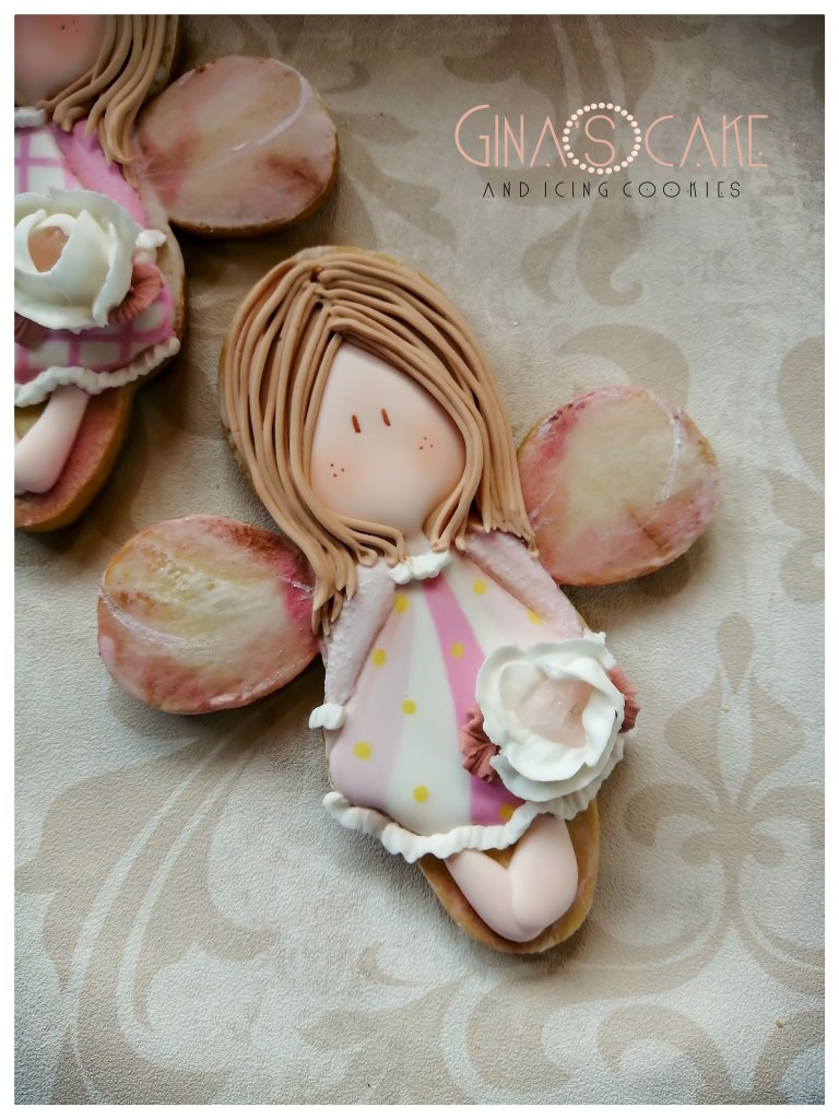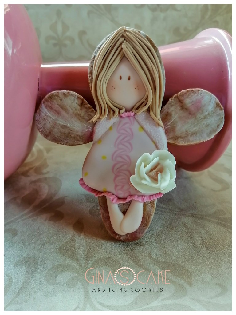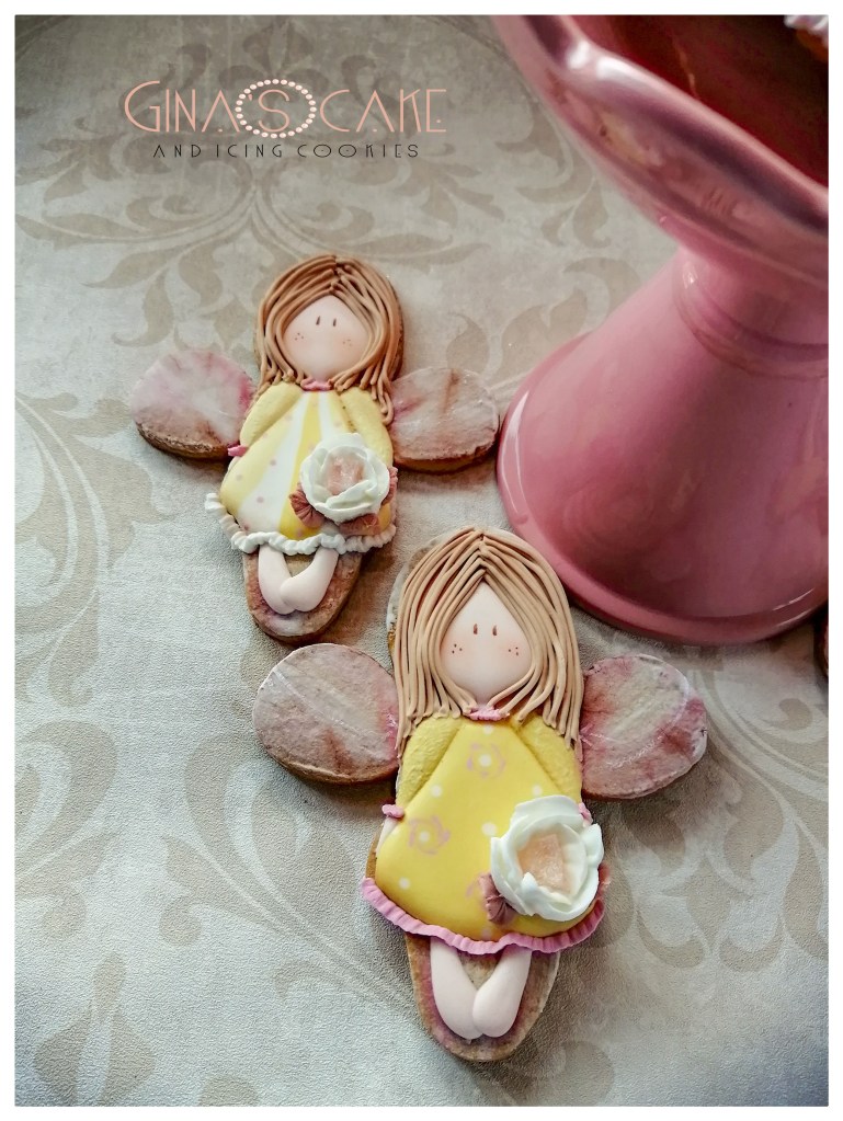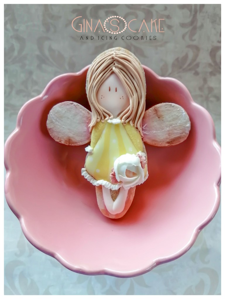Il biscotto della Fatina è il risultato di un assemblamento di due tagliabiscotti: il corpo è un prototipo di un cutter che mi feci preparare da un’azienda di Milano su mio disegno, le ali sono in realtà una goccia con la quale si può comporre un fiocco, facente parte di un set di Con Azucar y Algodon . Le lettere della scritta sono di Nuvem de Acucar.