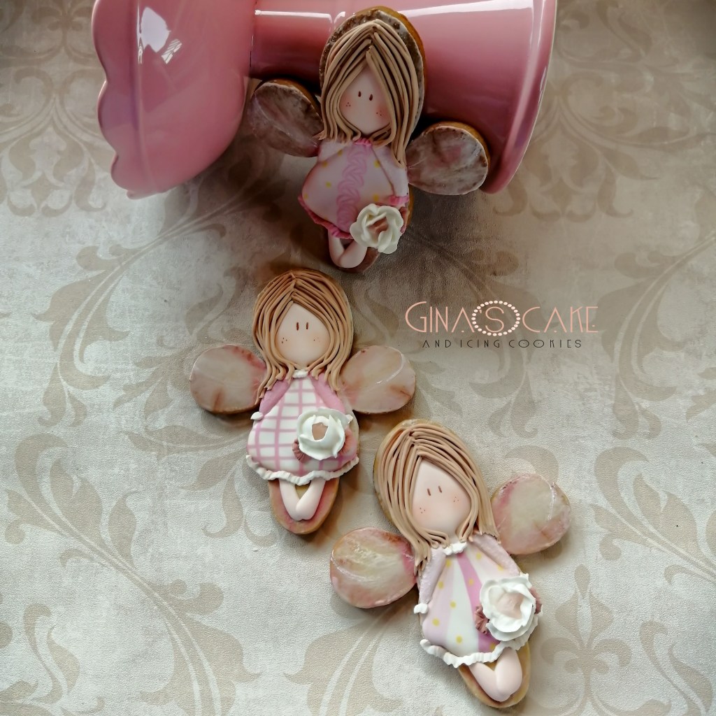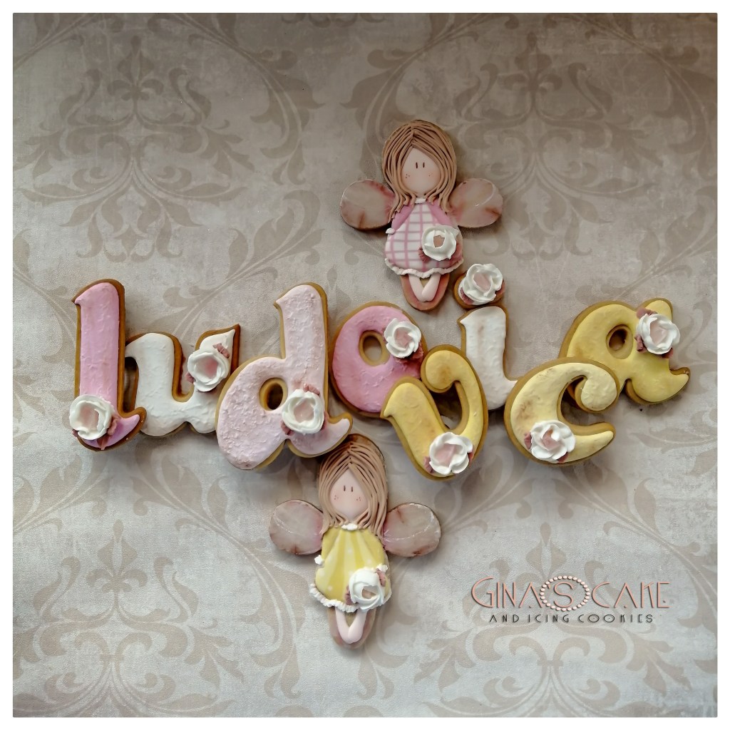 In occasione della Prima Comunione di Ludovica, svoltasi in provincia di Lecco, ho avuto il privilegio di preparare queste tenere fatine e la scritta del nome in biscotto, utilizzata per contornare la torta sullo sweet table preparato da mamma Francesca.