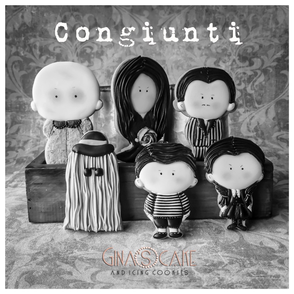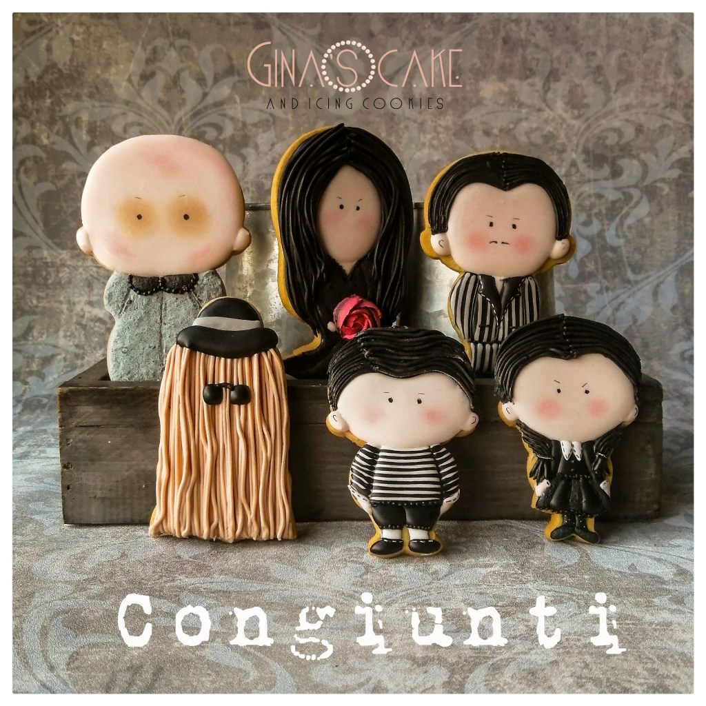 Come avrete notato negli scorsi anni, il dedicarmi ad Halloween è sempre ridotto all’essenziale nel senso che mi riesce difficile creare dei biscotti con questo tema, visto che non è affatto il mio preferito. Quando però ho scoperto un intero set di tagliabiscotti della Famiglia Addams, creato da Kreatif Cookie Cutters, non ho potuto fare a meno di acquistarlo perchè i telefilm in bianco e nero di questa strampalata famiglia, nell’ambito dell’intrattenimento, rientrano in uno dei miei bellissimi ricordi di gioventù. Insomma: ho sempre adorato la Famiglia Addams ma sempre e solo nella versione della serie televisiva prodotta negli anni sessanta.