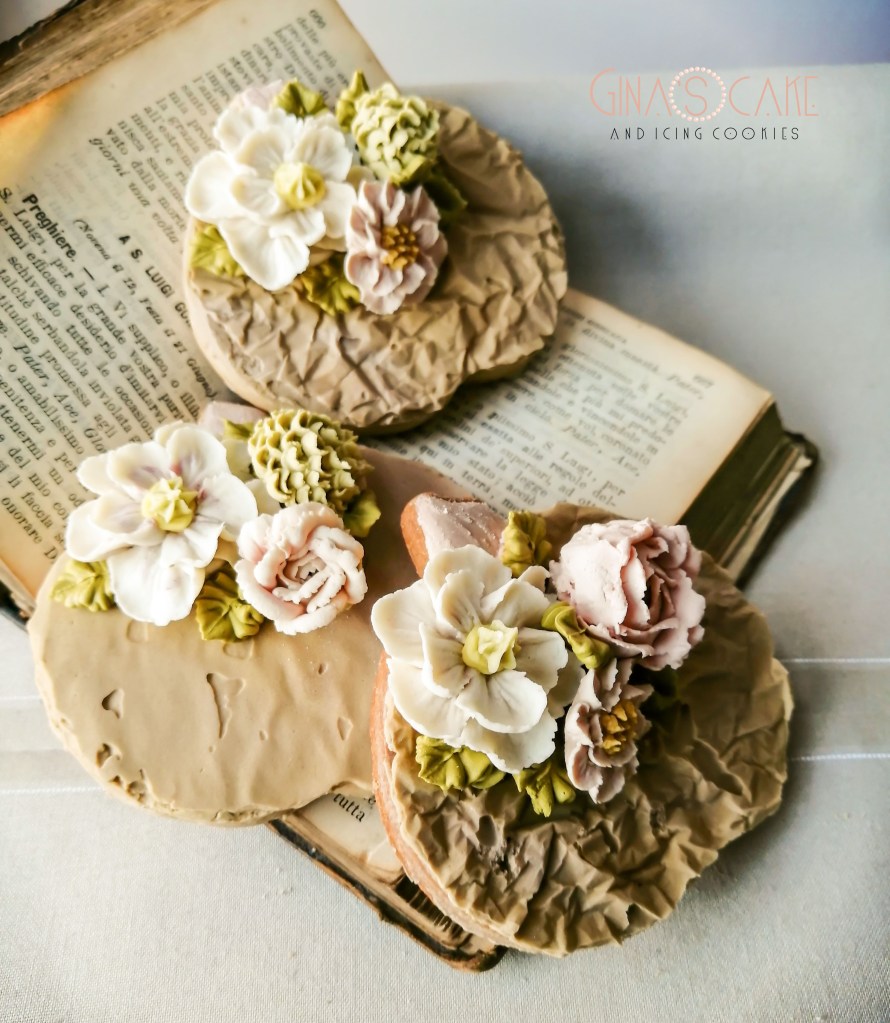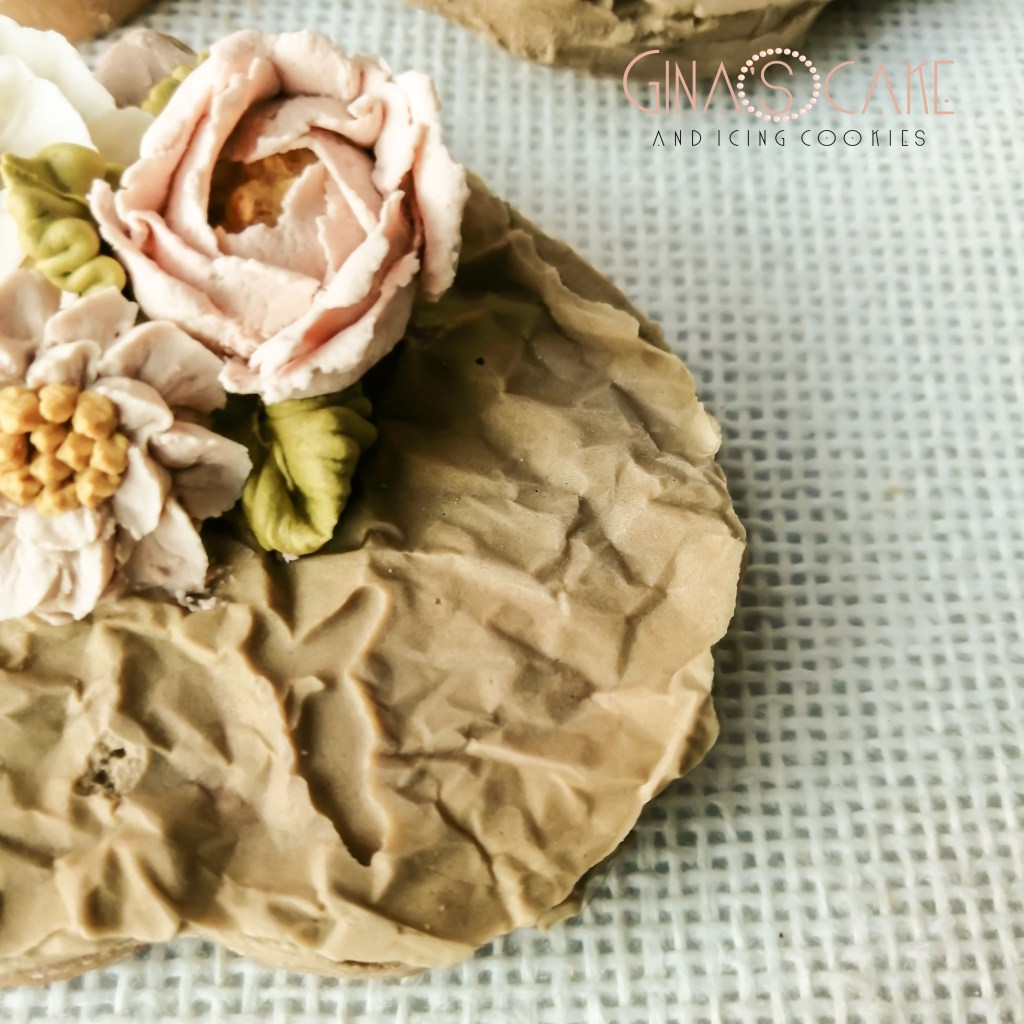 L’effetto carta stropicciata che vedete su questa zucca in primo piano (“crumple paper effect”), l’ho scoperto grazie alla cookie artist Renee Terry in arte Sweet Cheeks by Renee che a sua volta ha aggiunto una variante alla tecnica già presentata da Hani Bacova aka Haniela’s. Io le ho provate entrambe, ottenendo un risultato che mi ha alquanto divertito e soddisfatto.