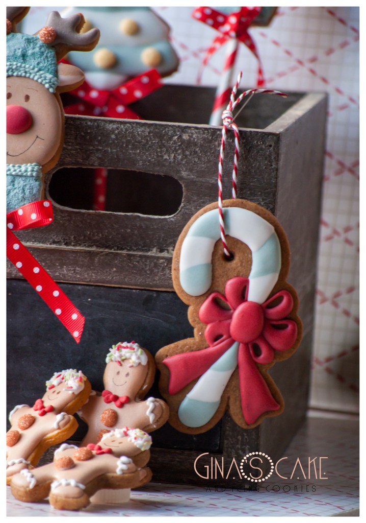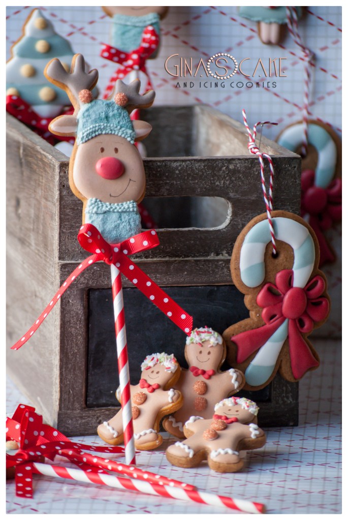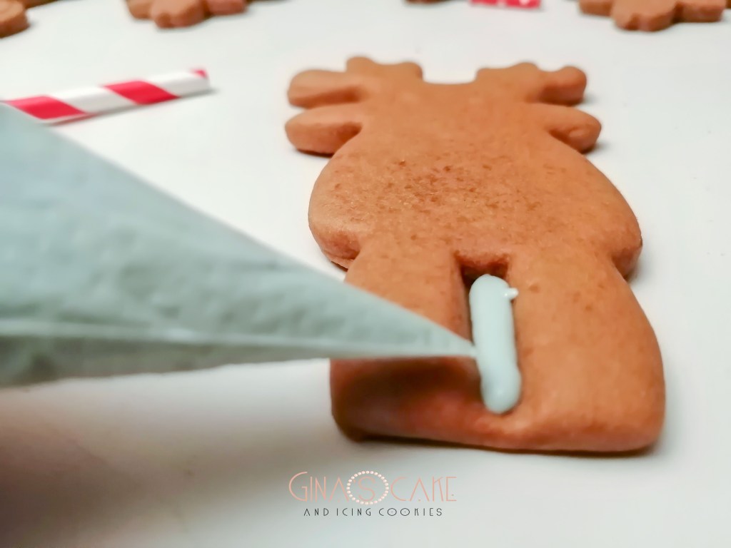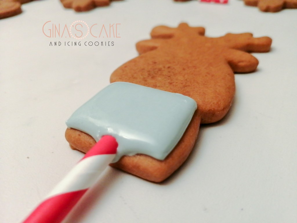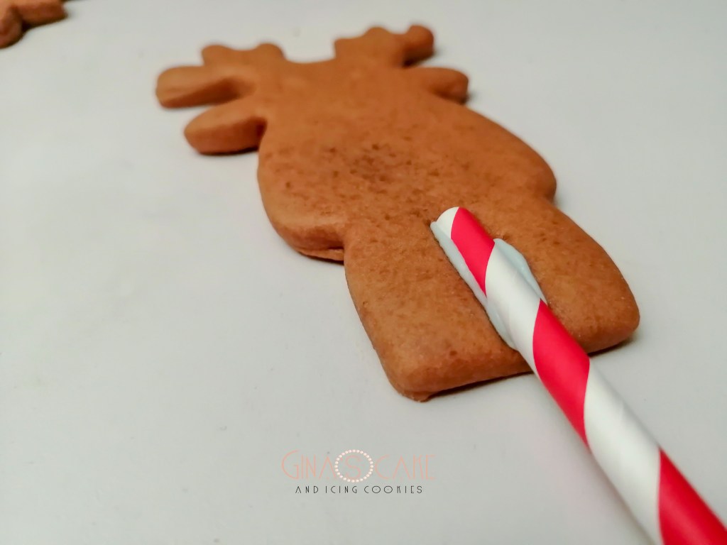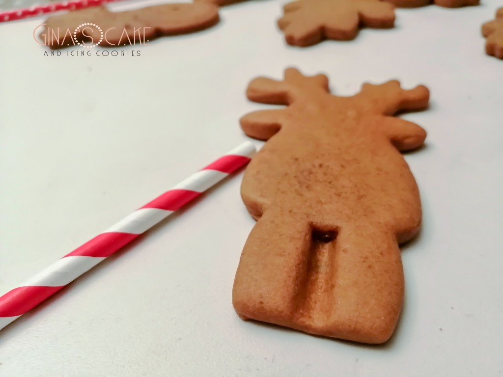Ho decorato i Gingerbread, realizzati con la ricetta di Lilaloa, pensando di utilizzarli come decorazione dell’albero o come biscotti “da passeggio”, da regalare soprattutto ai bambini. Come avrete notato infatti le renne, l’alberello, il cappello e lo scarpone sono posizionati su una cannuccia in carta. Solitamente, quando devo in particolare realizzare dei cake toppers, utilizzo lo stecco in legno, che deve essere inserito nella frolla, prima della cottura. Ovviamente, con le cannucce in carta non è possibile perchè si brucerebbero ma esiste un metodo per utilizzarle. Prima di infornare il biscotto, sarà sufficiente creare un’impronta della cannuccia, che inserirete solo nel momento in cui inizierete a decorare con la ghiaccia reale.