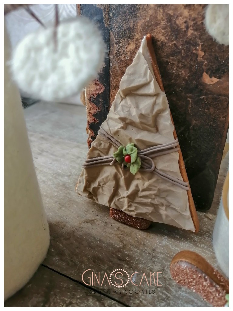 Anche in questo caso, ho utilizzato ghiaccia reale aromatizzata al cacao. L’albero è realizzato con il “crumple paper effect” (clicca qui).