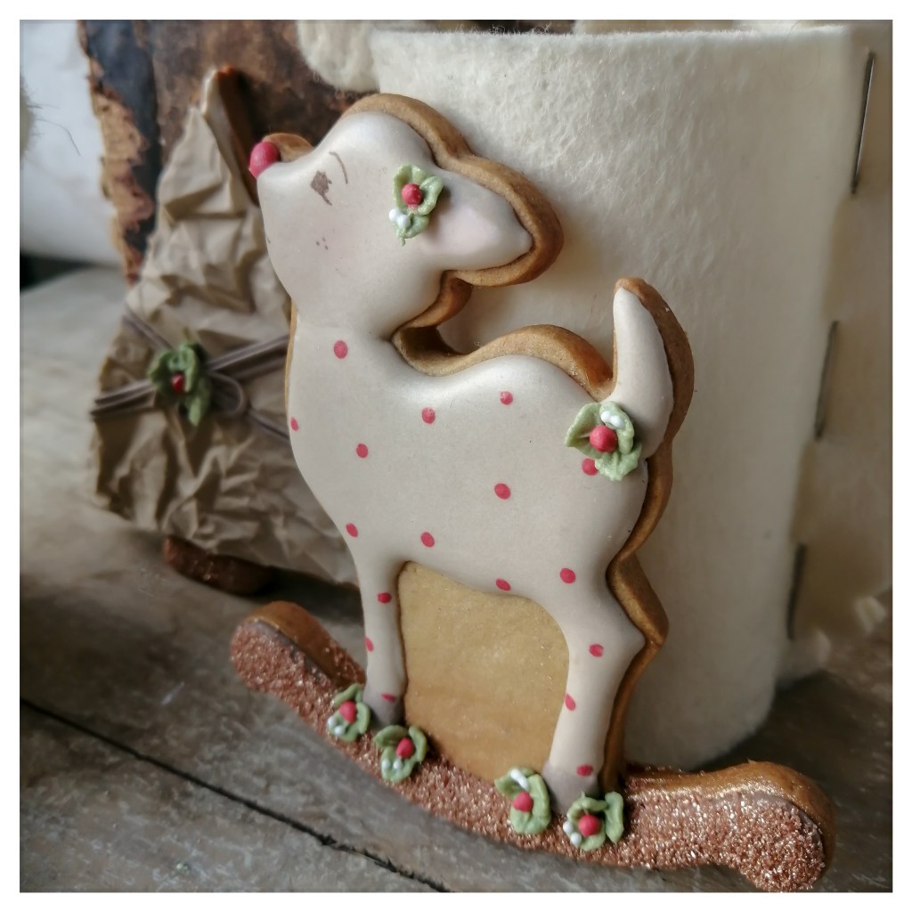 Meglio quindi pensare alla variante, nata per puro caso, mentre decoravo questi tre biscotti scelti per comporre un piccolo set: la fatina ha così assunto le sembianze di una renna.