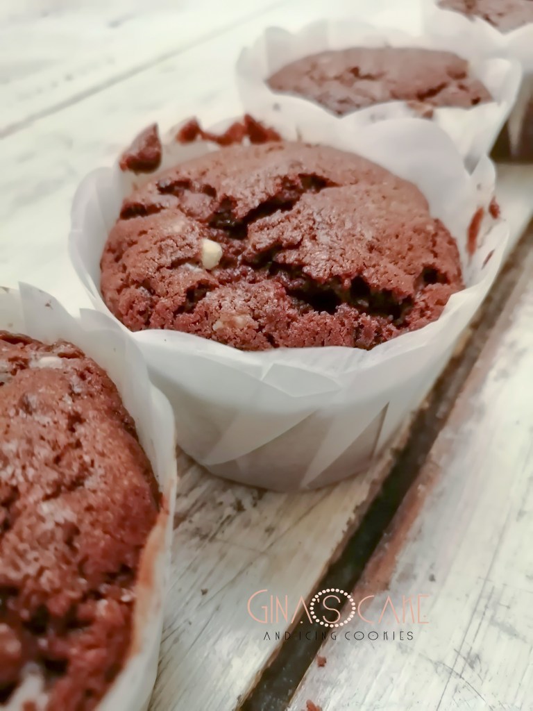 Ingredienti per 18 muffin: 90 gr di cioccolato fondente; 90 gr di cioccolato al latte; 90 gr di cioccolato bianco; 2 uova; 300 gr di panna UHT 38% di grassi; 85 gr di cassonade (io ho usato il Demerara) ; 85 gr di burro fuso; 250 gr di farina 00;25 gr di cacao amaro in polvere; 1 bustina di lievito; 2-3 di bicarbonato