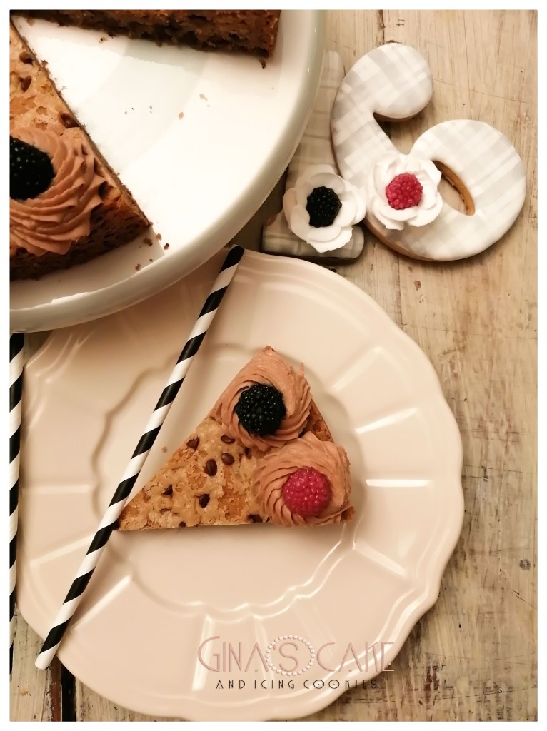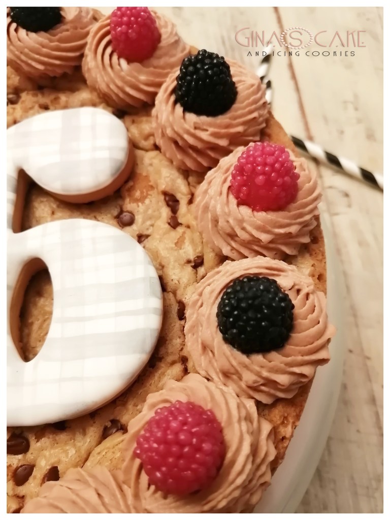 Quest’anno la scelta è ricaduta su una torta semplicissima ma goduriosa. Girovagando tra i vari gruppi Facebook, mi sono imbattuta in uno dedicato esclusivamente alle Cookie Cakes , ovvero la versione in torta dei famosi biscotti americani con zucchero di canna e gocce di cioccolato. Oltretutto, si prestano per essere decorate con svariate glasse (tra cui la buttercream) e biscotti decorati quindi non potevo non provare! Il vedere un numero considerevole di torte allegre, armoniose e colorate ma al tempo stesso semplici, mi ha piacevolmente stimolato! E poi, Carlo adora i cookies!