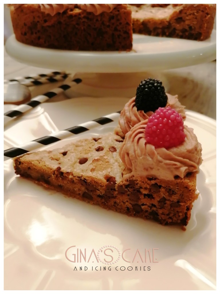 Data la presenza delle gocce di cioccolato, nella versione classica, la dicitura completa della torta è Chocolate Chip Cookie Cake (ecco le 4C). La ricetta che vi racconto è principalmente tratta dal blog Garnish and Glaze ma presenta alcune “contaminazioni” prese qua e là tra le numerose versioni consultate sul web. Per la decorazione ho utilizzato un frosting alla Nutella, la cui ricetta è tratta dal blog Passion for Baking. Le caramelle gommose “Berries” sono di Haribo.