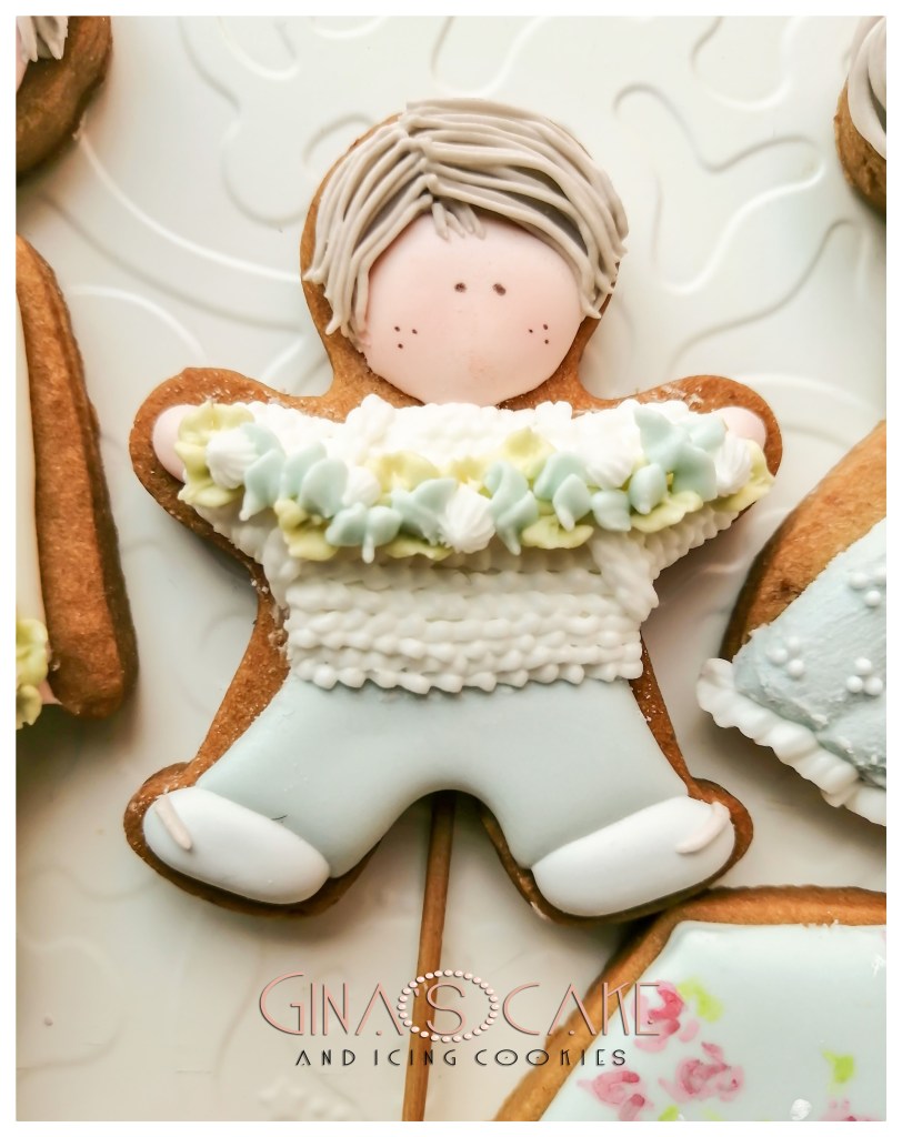 Il numero trentaquattro e i pantacollant della cookie doll sono dipinti a mano, con coloranti in polvere diluiti con alcool.