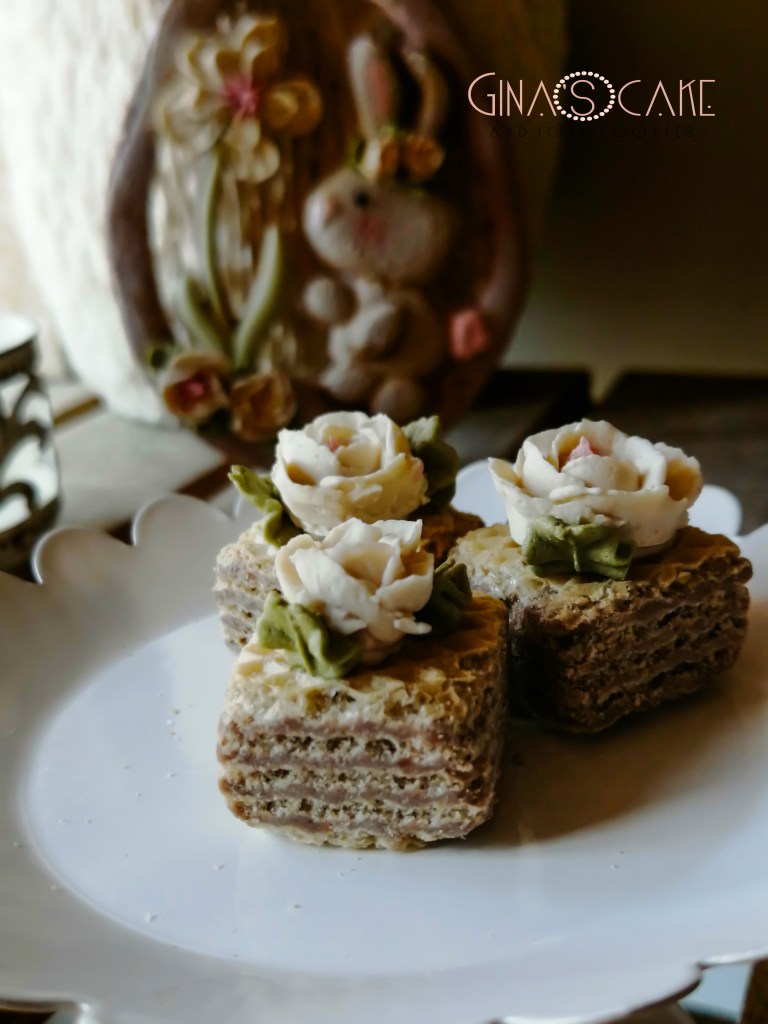 Come ulteriore elemento decorativo ma al tempo stesso goloso, ho abbinato dei wafer decorati. Nello specifico si tratta dei Quadratini al Cappuccino di Loacker. La decorazione dei wafer l’ho scoperta da poco sul web ed è soprattutto realizzata con il cioccolato fuso e sprinkles: io ovviamente ho utilizzato la ghiaccia reale e la Korean Bean Paste.