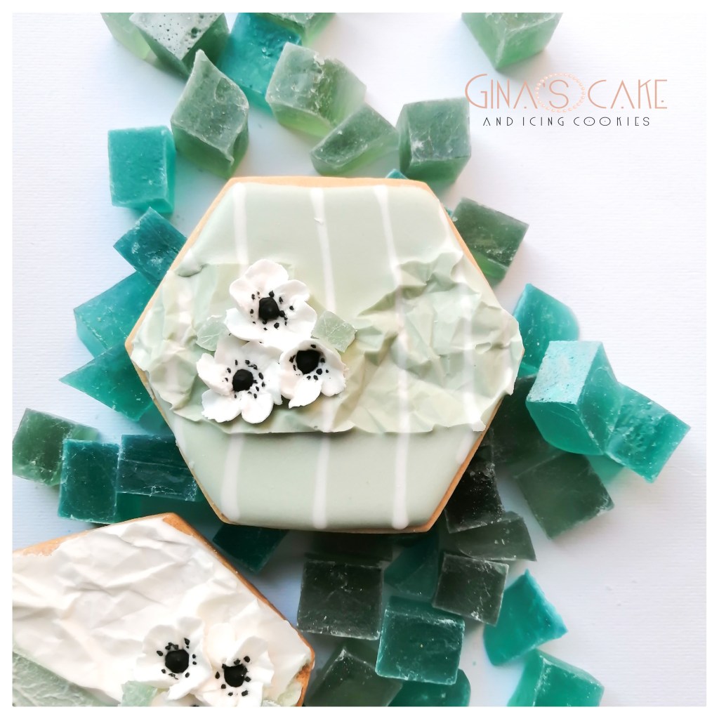 L’altro aspetto divertente a cui si prestano queste tecniche è l’utilizzo parziale sul biscotto: come si può vedere, creando anche solamente delle sezioni stropicciate, si ottiene un risultato armonioso ed elegante. Per questa variante invece, ho ancora una volta preso lo spunto dai biscotti di Renee Terry aka Sweet Cheeks by Renee.