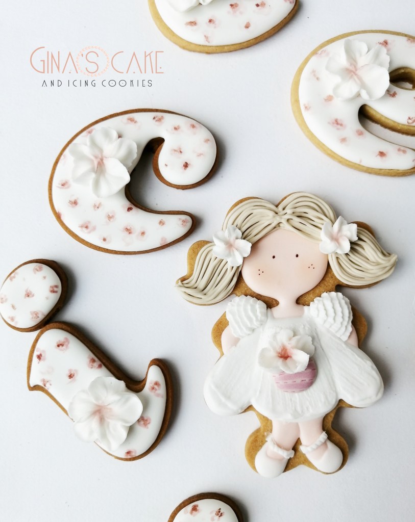 Salutando l’arrivo dell’estate, ecco il mio omaggio al Battesimo della piccola Cecilia. Questa serie di biscotti è una delle ultime che ho preparato a conclusione di una stagione di eventi meravigliosa. Per una questione di tempi, in quanto pubblico i miei lavori a festeggiamenti avvenuti, ne vedrete ancora fino alla prima metà di Luglio ma in realtà, con questo fine settimana appena trascorso, dichiaro ufficialmente chiusa la mia produzione di biscotti decorati. Come ben saprete, il caldo umido non è ideale per la frolla ma soprattutto per la ghiaccia quindi è giunto il momento di prendersi una pausa. E poi, devo iniziare a pensare alle nostre vacanze…..tanto sono ancora in tempo no? In fondo siamo solo al 21 Giugno!