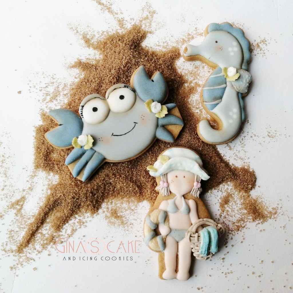 Come forse si sarà intuito, il tema mare non è il mio preferito ma se mi capita di scovare dei tagliabiscotti particolarmente carini, le mie resistenze vengono meno ed è cosi che poi nascono dei set come questo, dai colori insoliti e dai dettagli inappropriati.