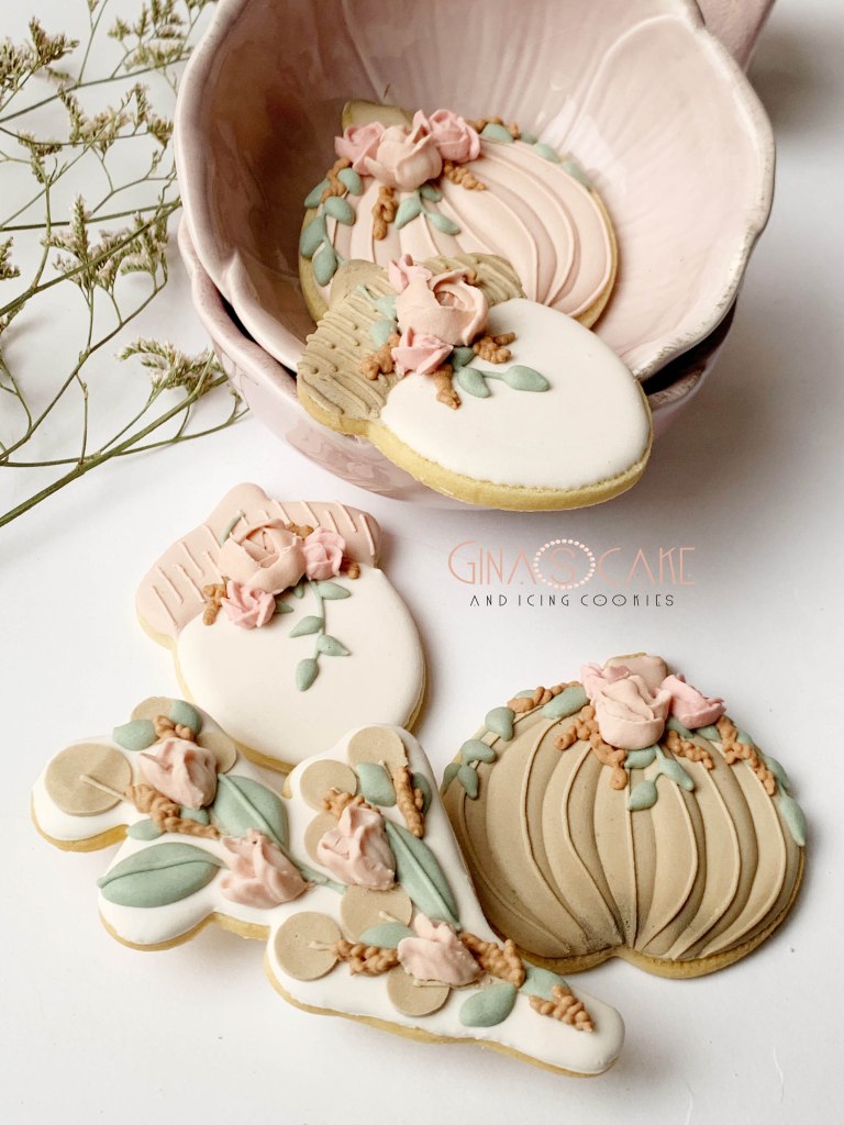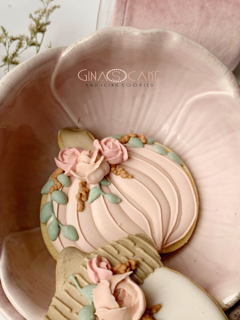 Non è la prima volta che uso questo titolo ma la scelta è stata davvero casuale! Nel 2016 intitolai proprio “Autunno in rosa” il set di biscotti con cui partecipai al concorso organizzato nell’ambito dell’ Italian Cake Festival di Milano. Tra l’altro, fu proprio l’ultimo anno della manifestazione ed io ebbi così la fortuna di prendere ancora un treno utile al mio percorso di decoratrice. Non vinsi la competition ma arrivai seconda; una partecipazione che mi permise però di farmi notare da Mariacristina Hellmann, una delle organizzatrici dell’evento e titolare della scuola di cake design, dove insegno ormai dal 2017 .
