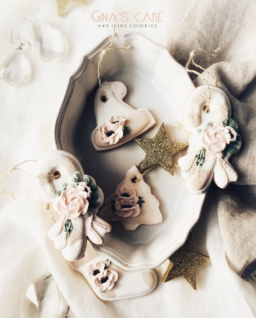 Nel trittico di oggi, vediamo due set in stile classico in cui i colori protagonisti sono il bianco, il rosso e il verde e un terzo in stile decisamente più elegante: i toni dell’avorio sono impreziositi dal rosa cipria ma il tocco meno consueto è dato dalla presenza dei fiori. A questo punto, di solito, fossimo in una story di Instagram, partirebbe il sondaggio che direbbe “e voi, quale stile preferite?”, oppure “secondo voi, qual è il mio stile preferito?” ma siccome fortunatamente, non è così perchè secondo me, va bene “curare la relazione” con la community ma raga, nochéinstagramcoach (leggere tutto attaccato), avete idea di quanto talvolta la community dei boomer si stufi di fronte a cotanta prassi?A parte questa piccola divagazione, dicevo appunto, che siccome non siamo su Instagram, vi rivelo direttamente quale sia il mio stile preferito tra questi citati…..ehm….ehm….non lo so! Sinceramente non so dirvi la mia scelta, perchè in realtà mi piacciono entrambi! Risposta scontata, già solo per il fatto che non riuscirei mai a realizzare dei biscotti con uno stile che non mi appartenga!