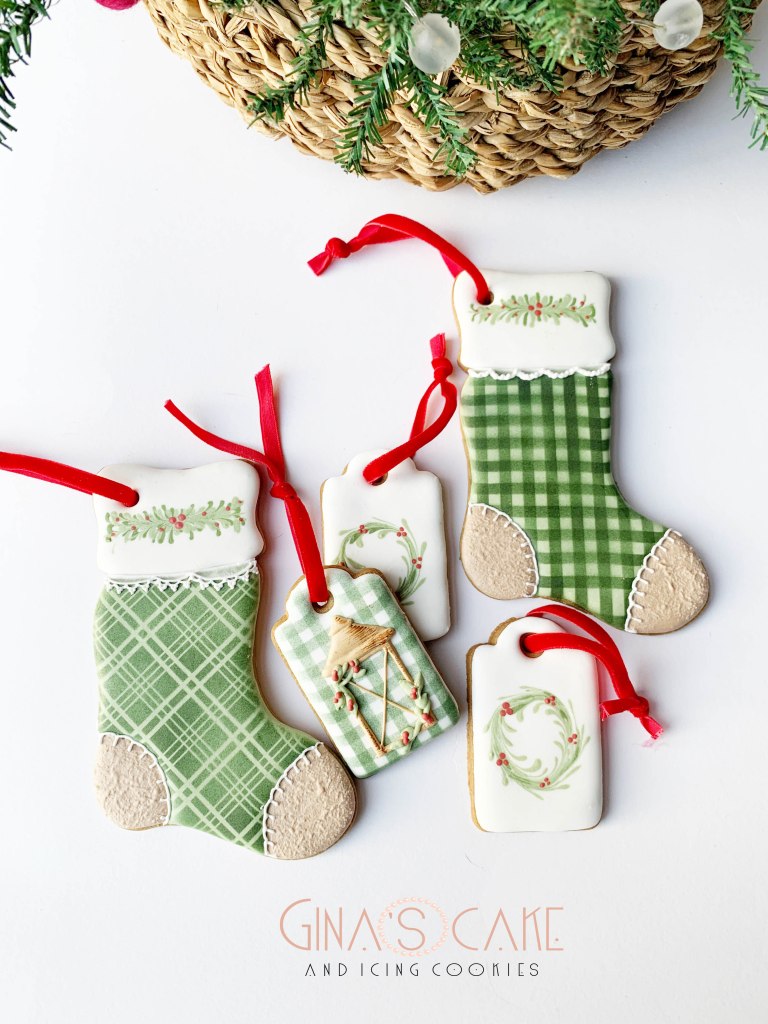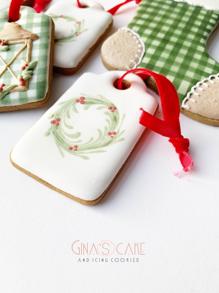 Fatte queste premesse, ecco i biscotti di oggi che poi ovviamente, sarebbero gli stessi del post di Instagram. Sono sempre loro: le calze create con lo stivale del pattino firmato Con Azucar y Algodon ma a me piacciono sempre! Quest’anno, per la prima volta, le ho aerografate. Vi piacciono in questo stile country chic? In quanto alle tags, sono più che altro un desiderata natalizio, recuperato per la Befana. Il prossimo Natale, devo ricordarmi di prepararle in tempo. Non sono delicate con queste ghirlande realizzate con la tecnica del wet on wet?
