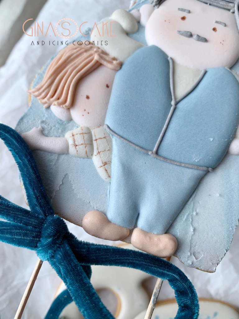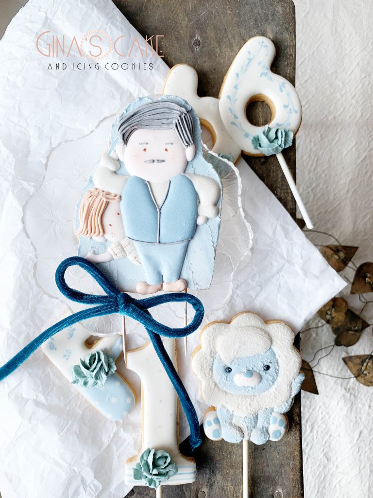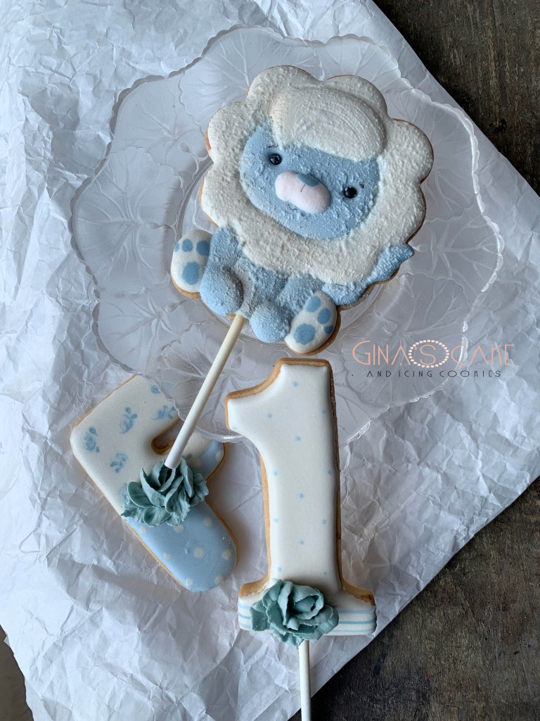 Doppio Compleanno e quindi doppia torta! I biscotti di oggi vi raccontano le torte preparate per il 66° compleanno di un nonno e il 1° del suo nipotino Flippo. Il mio compito è stato quello di creare unicamente i biscotti che avrebbero decorato le torte, preparate in casa dalla mamma del bimbo. La scelta dei soggetti quindi non è stata mia, per cui ad esempio, se mi chiedete cosa rappresenti un leoncino azzurro nel gruppo degli altri biscotti, non ve lo so dire (anche se un’idea me la sono fatta). Lo so che potevo fare le dovute domande ma con il tempo, ho imparato a capire quando sia il caso o meno di farle. Se le persone hanno le idee chiare e cioè sanno esattamente cosa vogliono, perchè intromettersi? Del resto, la torta è loro!