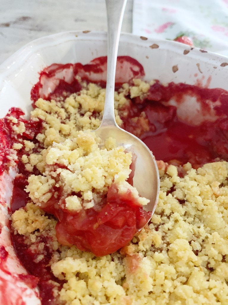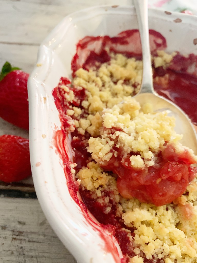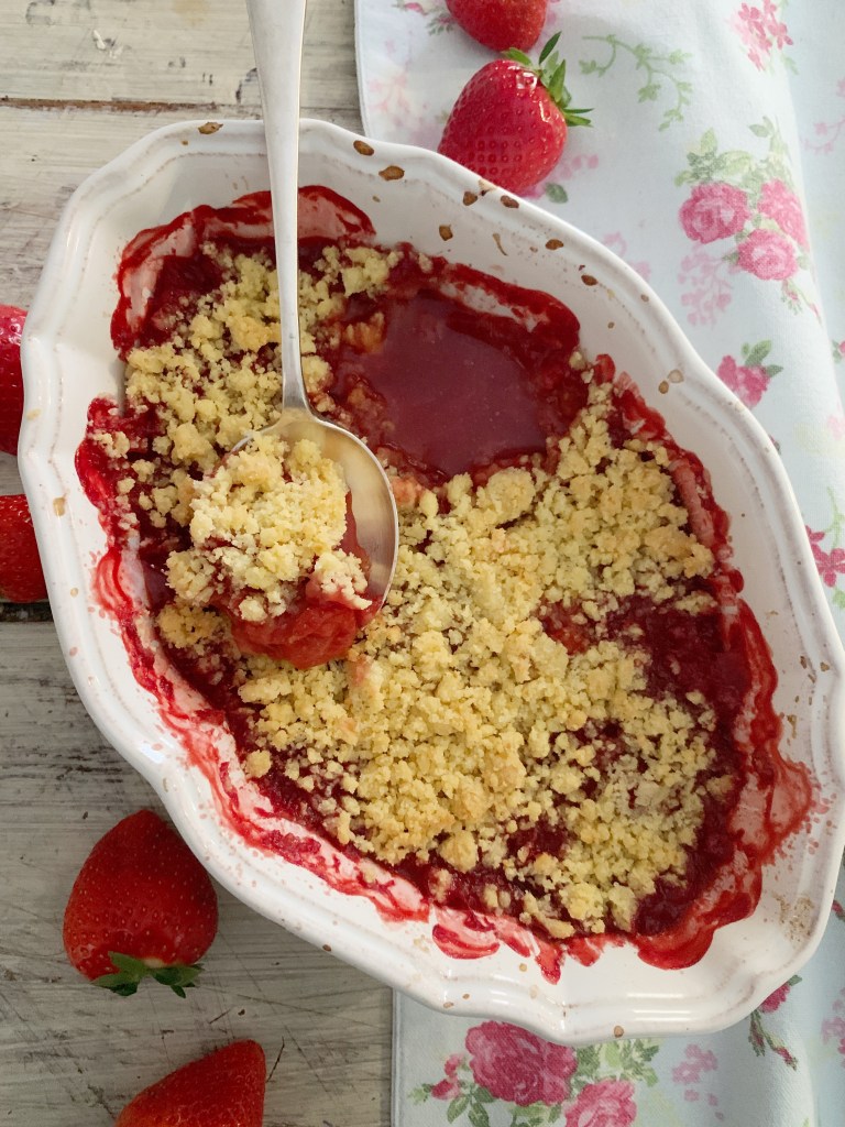 Conoscevo soprattutto il crumble di mele ma quello di fragole è uno spettacolo! Volendo si potrebbero associare entrambi i frutti! E poi diciamolo, un crumble si può fare con quasi tutta la frutta (io eviterei quella troppo acquosa….ma è un mio umile parere!).