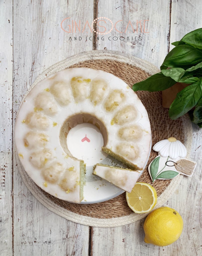Frullare lo zucchero con le foglie di basilico, inserirlo nella ciotola della planetaria e montarlo con le uova per almeno 10 minuti per ottenere un composto gonfio e spumoso. Intiepidire l’olio con la scorza di limone e incorporarlo gradualmente al composto montato. Con l’uso di una marise, aggiungere il succo di limone e la farina setacciata con il lievito e il sale. Trasferire il composto nello stampo a ciambella di 23cm di diametro, precedentemente imburrato e infarinato, e cuocere nel forno statico preriscaldato a 175° per circa 40 minuti. Per verificare la cottura, fate la prova stecchino. Lasciate raffreddare prima di sformare . Una volta freddo, decorare con la glassa ottenuta mescolando zucchero a velo, succo e scorza di limone (per la glassa i pesi sono a sentimento….nel senso che mi regolo a seconda della mia consistenza preferita…..generalmente, parto da circa 100- 150 g di zucchero a velo….)