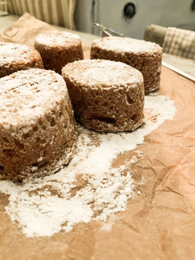 Ingredienti: 115 g di farina di nocciole; 115 g di zucchero di canna; 20 g di Maizena; 3 g di lievito per dolci; 1 pizzico di fleur de sel; zeste d’arancia o di limone; 45 g di latte parzialmente scremato o di latte vegetale; 3 uova