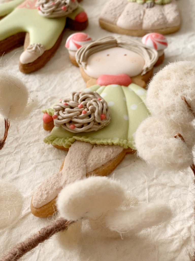 Solo cookie dolls per il giorno di Festa più atteso dell’anno! Potrebbero essere le cugine che dopo l’abbuffata del pranzo di Natale in campagna dai nonni, se ne escono in cortile tutte imbacuccate con l’intento di giocare , mentre la nonna monta la panna a mano, adagiando la ciotola nella neve, per mantenerla fredda. Eh sì, manca ancora l’assaggio del panettone che appunto, verrà servito con la panna montata, altrimenti detta “fioca” (ndr. in piemontese il termine fioca significa neve)